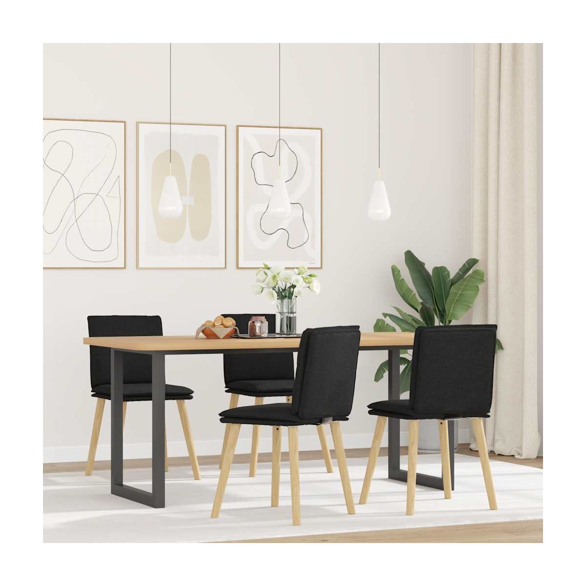 Este set de sillas de comedor combina simplicidad y comodidad con un diseño elegante, lo que la convierte en un atractivo en tu hogar. Material suave y duradero: la tela presenta un aspecto simple y limpio y al mismo tiempo es transpirable y duradera.Estructura robusta y estable: la silla de comedor está sostenida por metal y madera, lo que proporciona mayor durabilidad y estabilidad.Experiencia de asiento cómoda: el asiento y el respaldo del asiento del comedor están rellenos de espuma gruesa para mantenerte cómodo.Amplias aplicaciones: la silla se puede utilizar en el comedor, la sala de estar, la habitación de invitados, etc., según sus necesidades.