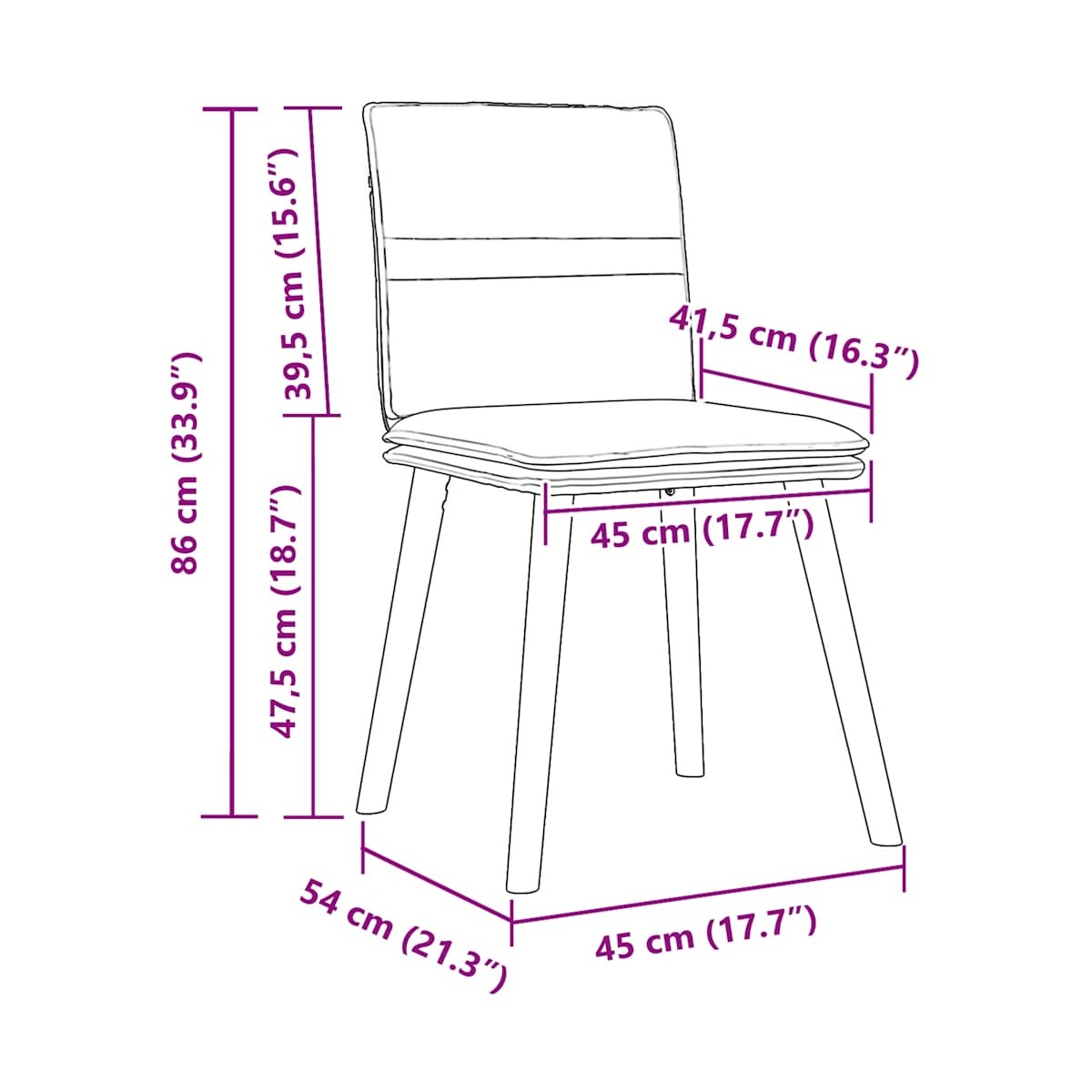 - Altura del asiento desde el suelo: 47,5 cm