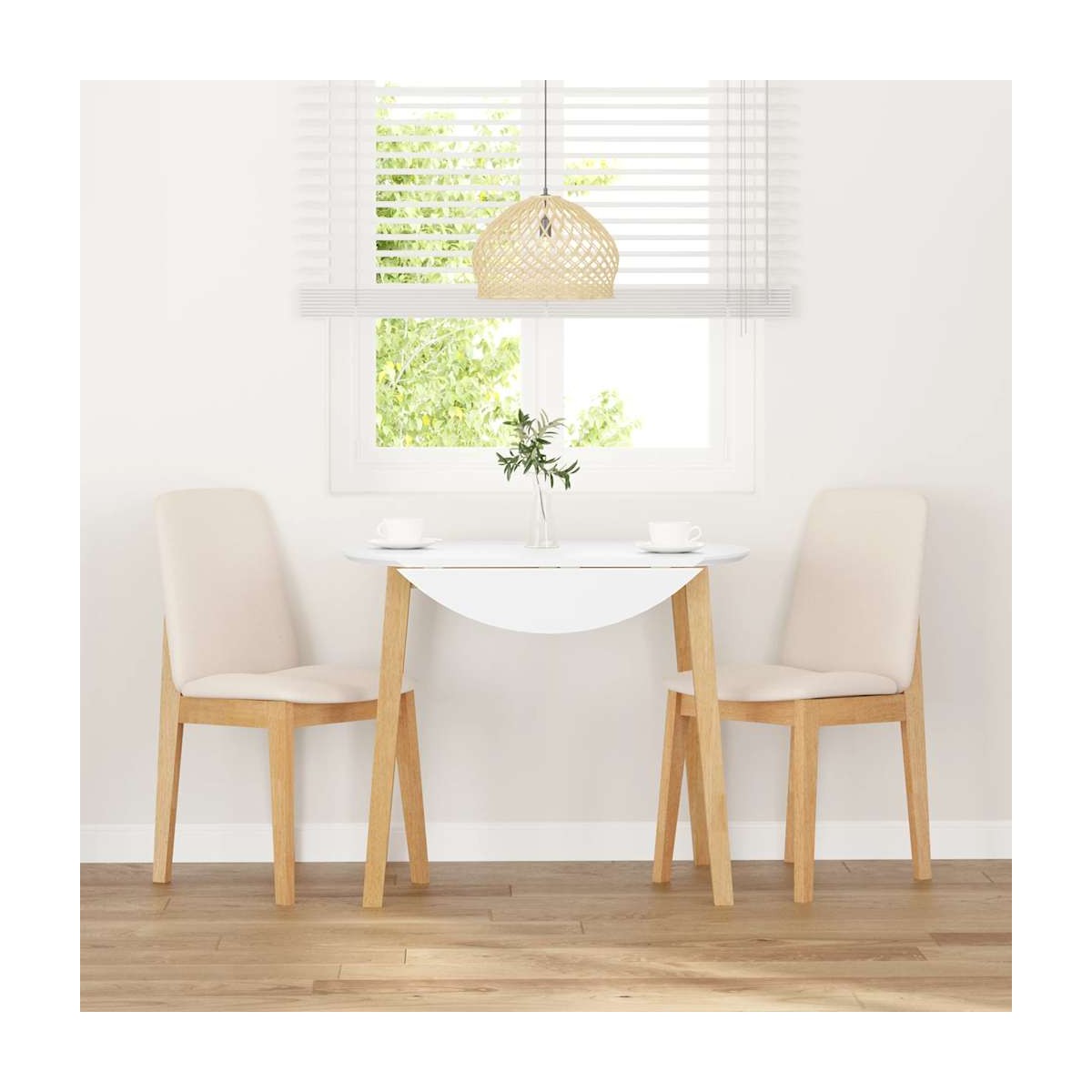 - Material: Madera maciza de caucho, tela (100% poliéster)