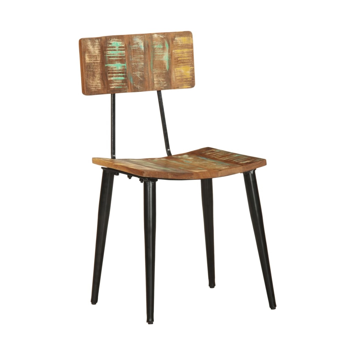 Nuestro juego sillas de comedor de madera de estilo antiguo será un aporte único para tu comedor. La estructura de hierro hace que las sillas sean estables y robustas. Estas sillas están hechas de macizo , lo que significa que cada mueble es único y ligeramente diferente al siguiente. Los muebles hechos de madera recuperada tienen las características de diferentes maderas como la teca, la madera de mango y la acacia. La madera macizo es macizo, estable, duradero y hermosa. Los signos de desgaste y la grano visible le dan a cada pieza su propia historia y un aspecto único. Este juego de sillas está totalmente hecho a mano y cada paso del proceso se lleva a cabo con el mayor cuidado. El acabado de pintura multicolor se suma a su espectacular estilo retro. Nota importante: Los colores pueden variar de una pieza a otra, lo que hace que cada una de nuestras mesas de comedor sea única. La entrega es aleatoria.