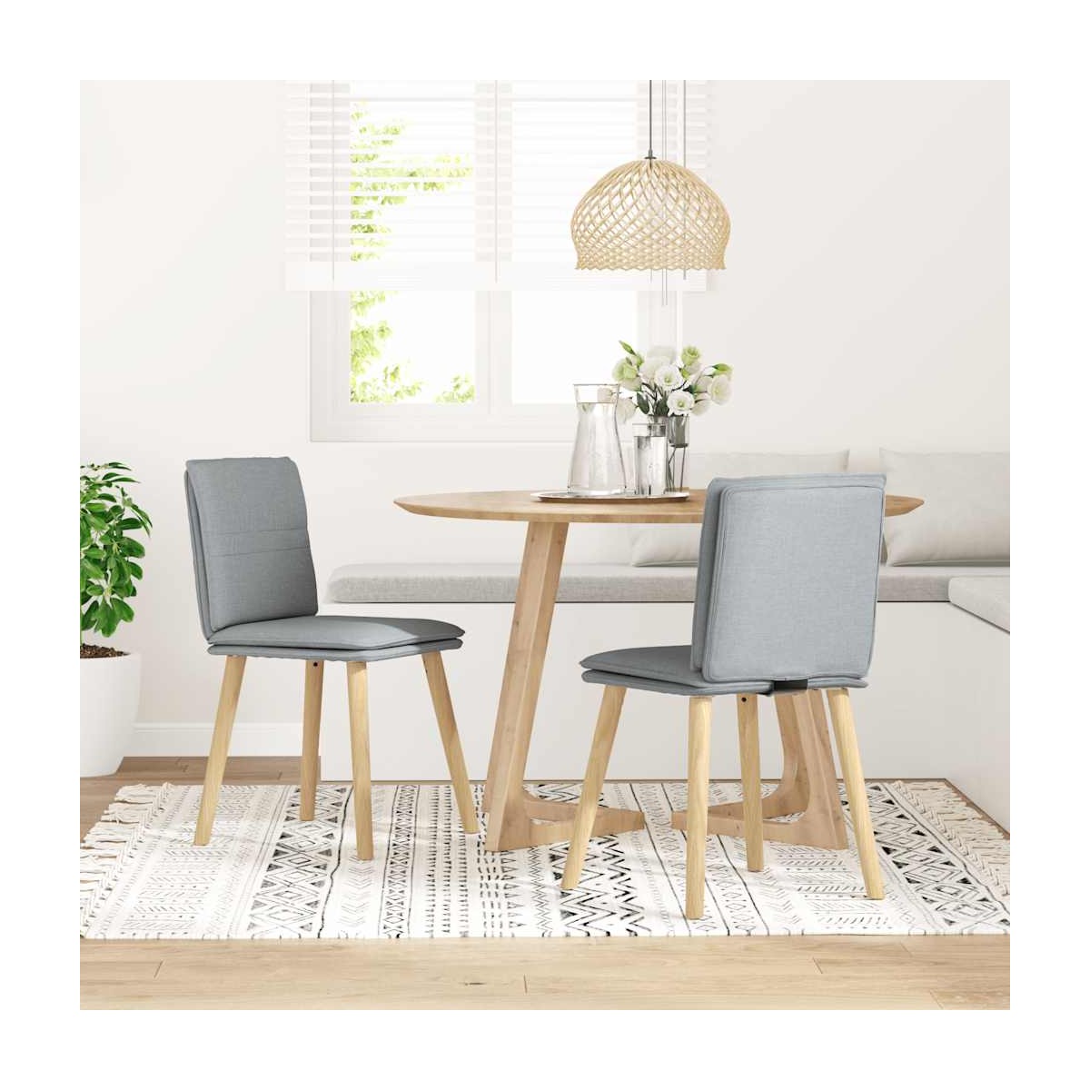 Estas sillas de comedor cuentan con un diseño ergonómico y atemporal que ofrece comodidad y apoyo excepcionales, lo que las convierte en un complemento perfecto para cualquier habitación de su hogar. Robusto y estable: La madera maciza de caucho es un bonito material natural. La madera de caucho tiene un grano denso y es resistente a los golpes y duradera.Material suave y duradero: La tela de poliéster ofrece una combinación de suavidad, transpirabilidad y durabilidad, lo que garantiza que experimentes la máxima comodidad.Experiencia de asiento cómoda: el asiento y el respaldo de la silla están rellenos de espuma gruesa para mantenerte cómodo.Amplias aplicaciones: ya sea que esté disfrutando de su comida en el comedor para cenar o simplemente leyendo y relajándose en la sala de estar, estas sillas de comedor pueden satisfacer perfectamente sus necesidades.