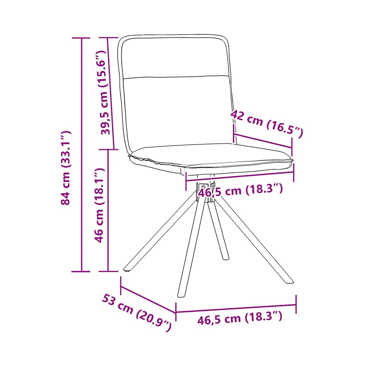 - Dimensiones del asiento: 46,5 x 42 cm (ancho x profundo)