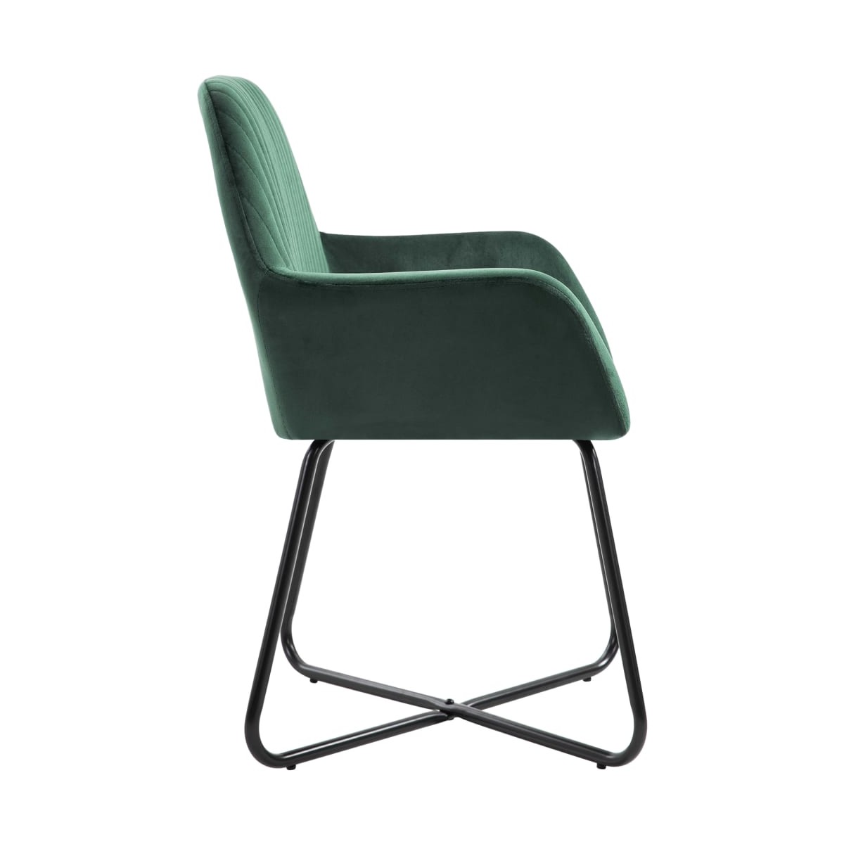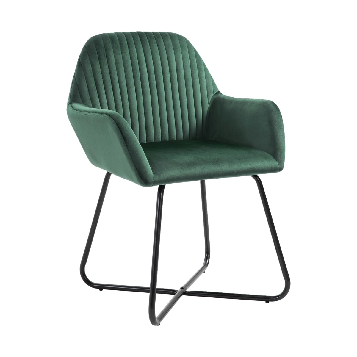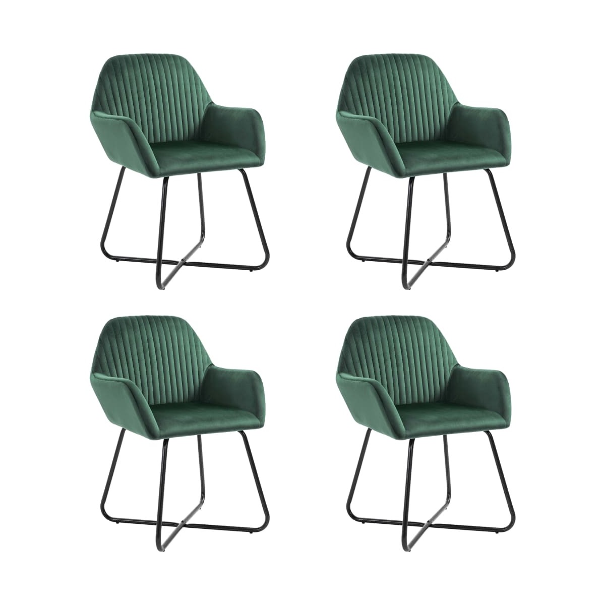 ¡Agrega un toque moderno a tu comedor o sala de estar con nuestras sillas de comedor acogedoras y estables! Hechas de terciopelo de calidad, este conjunto de 4 sillas de comedor está diseñado estética y ergonómicamente para dar un toque acogedor a tu hogar. Proporciona un lugar cómodo para que su familia cene en el comedor o lea y descanse en el salón. Gracias al asiento suave, los reposabrazos y el respaldo, nuestra silla sin duda te brindará una comodidad óptima para sentarse. Además, las patas de acero con recubrimiento en polvo también brindan una gran estabilidad y aseguran la excelente durabilidad de la silla. La entrega incluye 4 sillas de comedor.