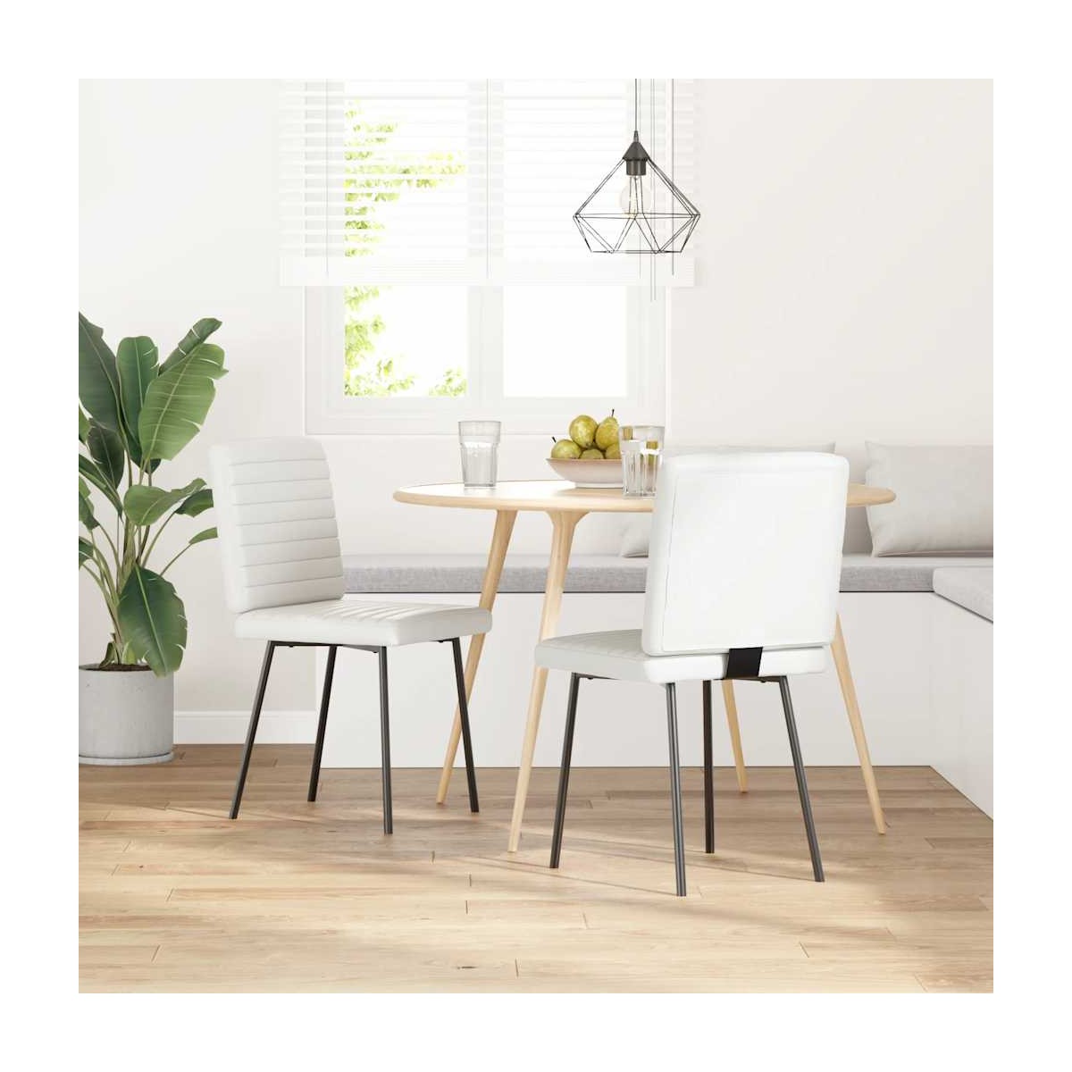 Este set de sillas de comedor combina simplicidad y comodidad con un diseño elegante, lo que la convierte en un atractivo en tu hogar. Larga duración y fácil mantenimiento: El cuero sintético es un material muy duradero y resistente a las manchas, por lo que es fácil de limpiar con un paño húmedo. Su superficie lisa le da un aspecto elegante que recuerda al cuero auténtico.Estructura robusta y estable: la silla de comedor está sostenida por metal y madera, lo que proporciona mayor durabilidad y estabilidad.Experiencia de asiento cómoda: el asiento y el respaldo del asiento del comedor están rellenos de espuma gruesa para mantenerte cómodo.Amplias aplicaciones: la silla se puede utilizar en el comedor, la sala de estar, la habitación de invitados, etc., según sus necesidades.