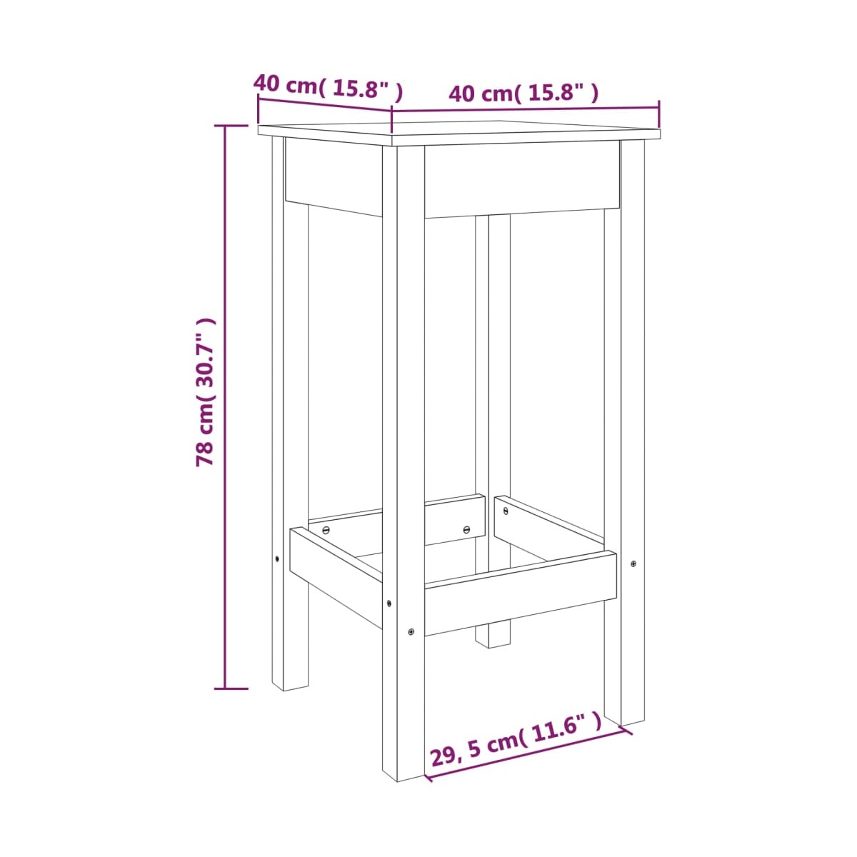 - Dimensiones: 40 x 40 x 78 cm (largo x ancho x alto)