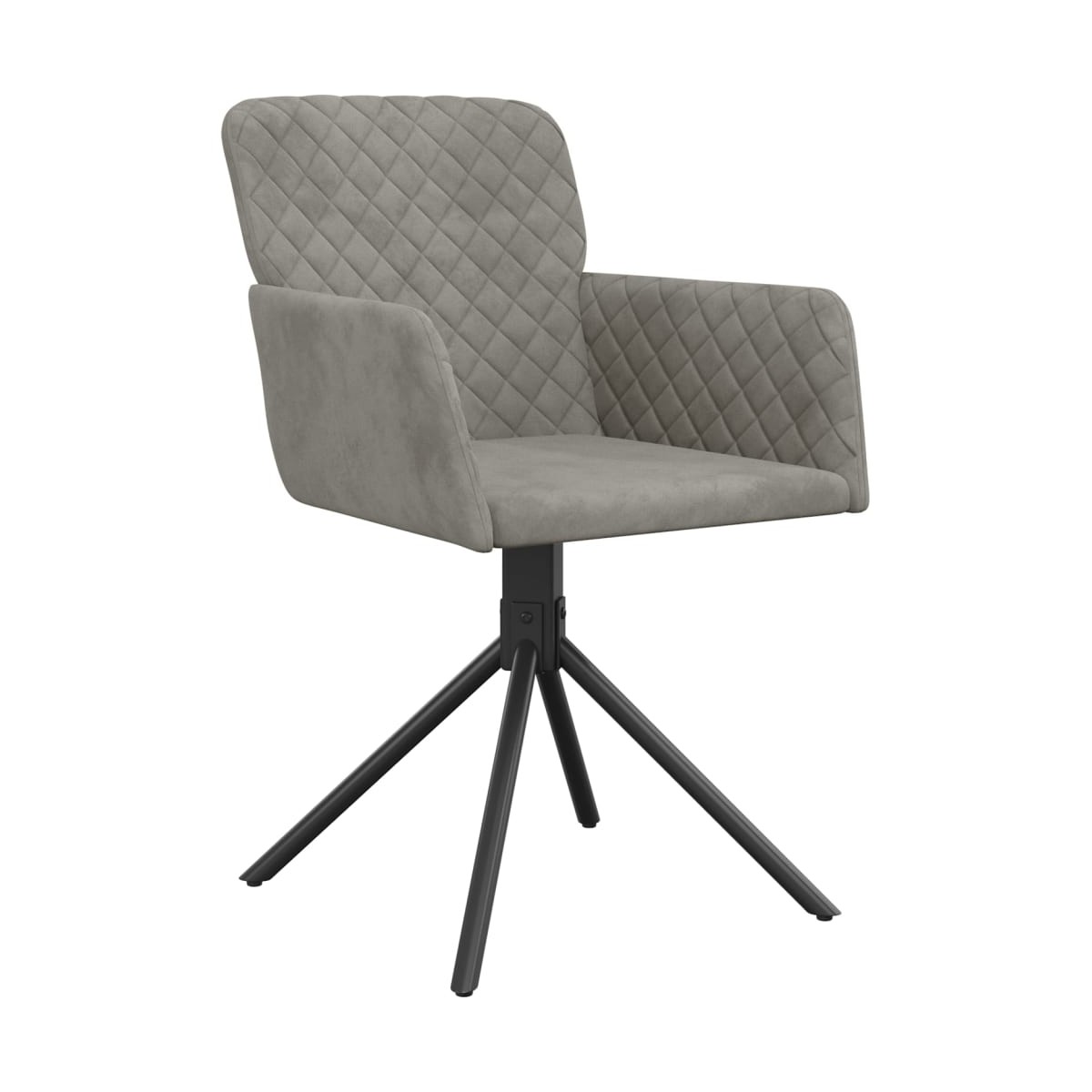 Estas sillas de comedor giratorias combinan sencillez y comodidad con un diseño elegante, por lo que llamarán la atención en tu hogar. Material de primera calidad: El terciopelo es un tejido suave y lujoso reconocido por su densa pila de fibras de corte uniforme que tienen un tacto suave. La tela de terciopelo es suave, lo que hace que sea cómoda al tacto.Estructura robusta y estable: La estructura de metal y madera contrachapada garantiza su solidez y estabilidad.Cómodo asiento de comedor: El reposabrazos y el respaldo tienen un diseño ergonómico y están acolchados con espuma, lo que garantiza la máxima comodidad al sentarse.Gran flexibilidad: El diseño giratorio de 360 grados permite un amplio rango de movimientos.