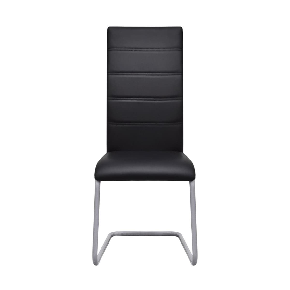 Estas sillas de comedor de modelo voladizo cuentan con un diseño elegante y aerodinámico, siendo perfectas para un interior más moderno. Las mismas añadirán un toque de estilo a su sala de estar en su casa o en su oficina. El asiento acolchado de espuma está tapizado con cuero artificial de calidad, siendo muy resistente y duradero. La parte superior del respaldo ofrecerá máxima comodidad y un gran apoyo para su espalda. Estas sillas de comedor no solo que son ligeras pero también duraderas gracias a su fuerte estructura tubular de acero. El montaje es muy fácil. El envío incluye 2 sillas de comedor.