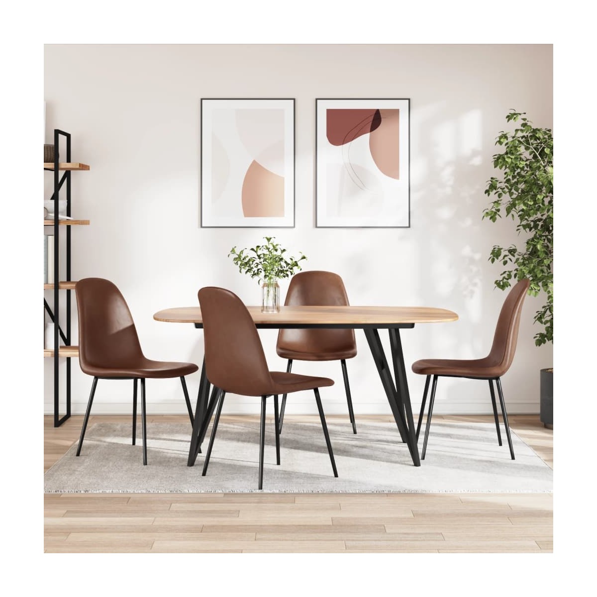 Elegante y práctico a partes iguales, este juego de sillas de comedor está diseñado para ser un excelente aporte para tu comedor, cocina, sala de estar, etc. Material duradero: El cuero sintético de primera calidad es un material muy duradero. Es resistente a las manchas, por lo que es fácil de limpiar con un paño húmedo. Además, la superficie lisa da un aspecto lujoso y la belleza del cuero auténtico.Estructura estable: La estructura de hierro hace que la silla de comedor sea estable y duradera.Diseño ergonómico: El diseño ergonómico de la silla de cocina garantiza una comodidad y relajación óptimas cuando estás sentado.