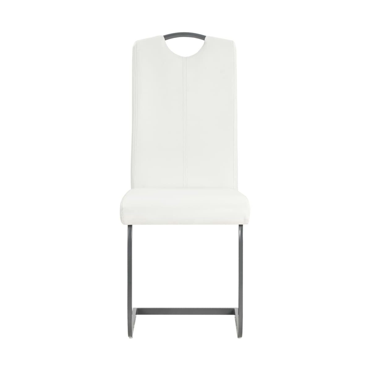 Este conjunto de sillas voladizas de comedor tiene un diseño elegante y moderno que se adaptará a cualquier cocina o comedor actuales. Las sillas, acolchadas y con un tapizado de cuero sintético, son muy cómodas y le darán a su hogar una apariencia lujosa. Su robusta estructura de madera hace que las sillas sean estables y duraderas. Es un conjunto de sillas de fácil montaje. La entrega incluye 4 sillas de comedor.