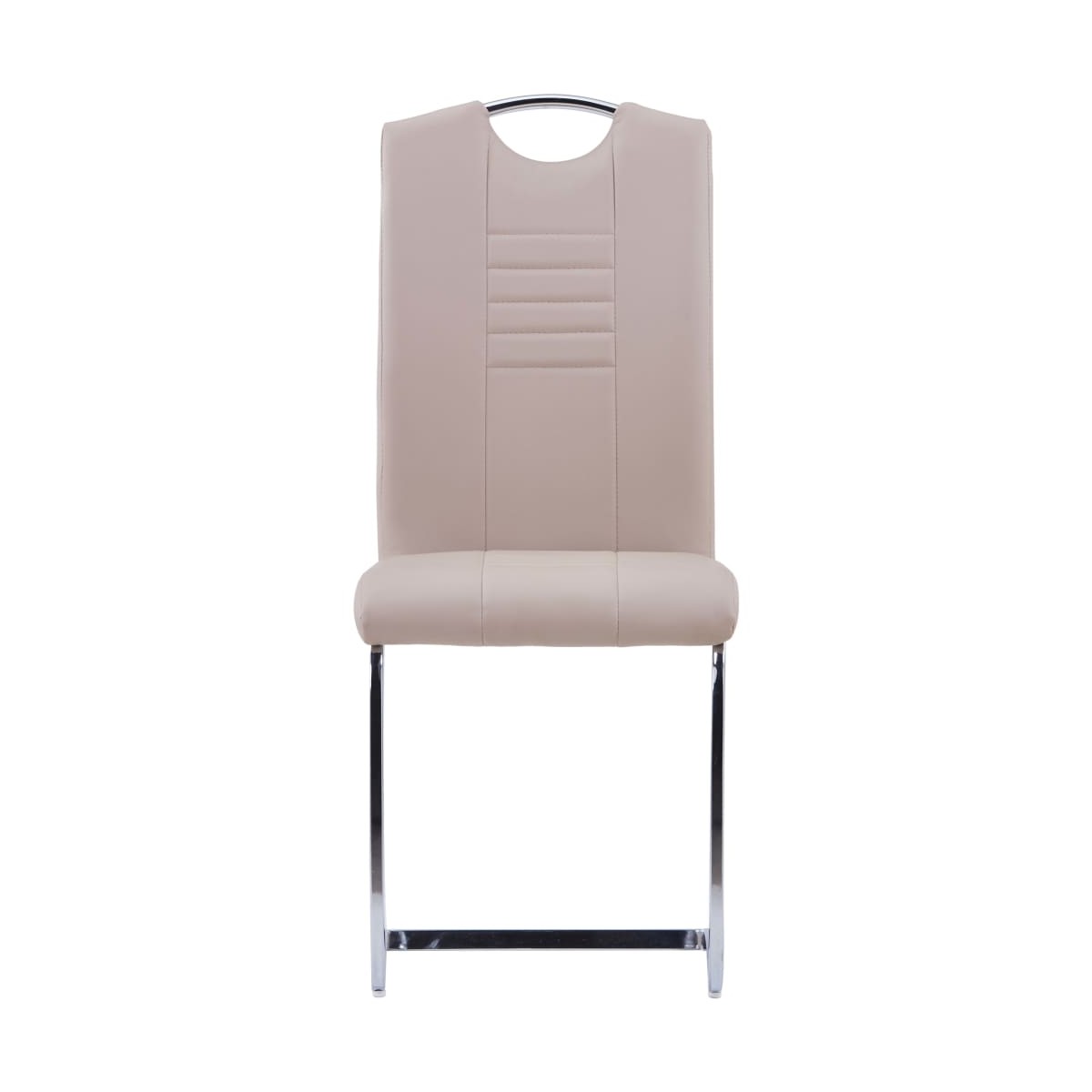 Este conjunto de sillas voladizas de comedor posee un diseño elegante y moderno, y será perfecto para tu hogar, restaurante u oficina. Las sillas de comedor están tapizadas con cuero sintético, duradero y fácil de limpiar, y acolchadas para proporcionar la máxima comodidad. El diseño ergonómico hace que la silla de comedor sea muy cómoda para acurrucarse en ella. Gracias a la estructura de acero cromado, las sillas son muy robustas y estables. Además, equipadas con una asa en el respaldo, las sillas de comedor son prácticas y se pueden mover fácilmente. La entrega incluye 6 sillas de comedor.