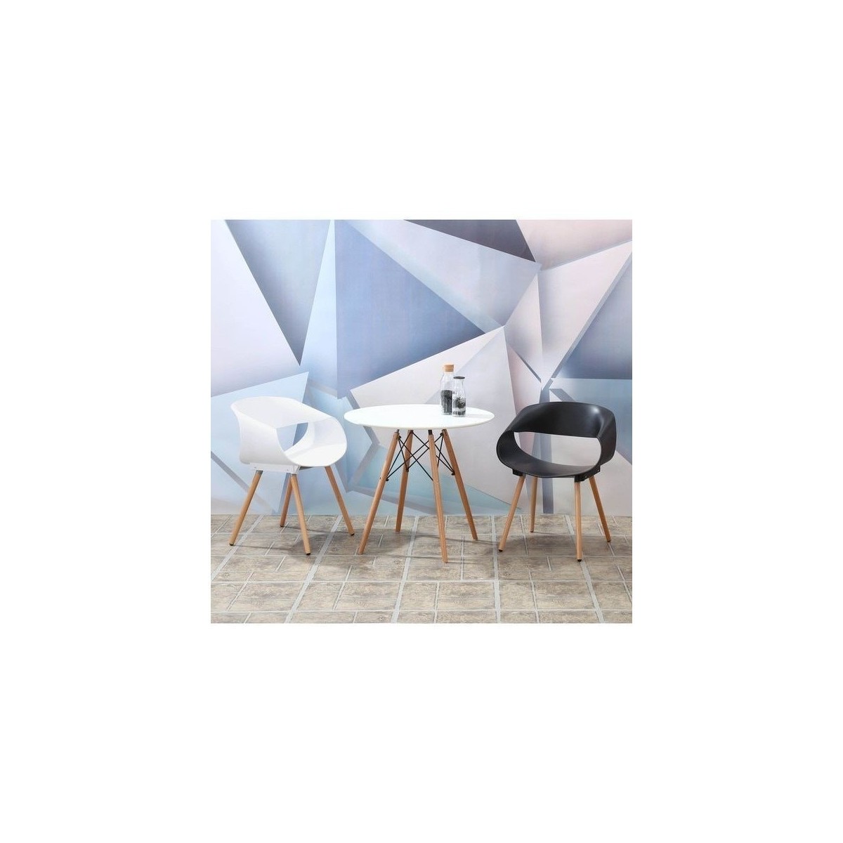Silla de diseño, madera de haya, carcasa de polipropileno negra.