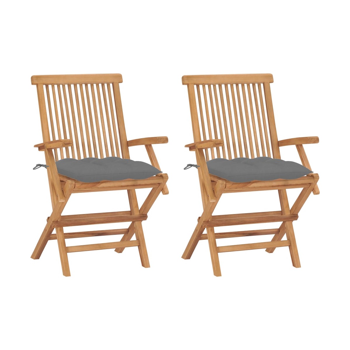 Este juego de sillas de jardín de madera consta de 2 unidades y está destinado a ser un gran aporte para el jardín, la terraza o el patio. Podrás relajarte y charlar con familiares y amigos o disfrutar del buen tiempo. Hecha con madera dura de teca muy duradera, este mueble de teca ha sido curado, secado en horno y luego lijado finamente para darle una apariencia muy suave. La madera de teca es conocida por su excepcional resistencia a la fuerza y al clima, por lo que es mucho más adecuada para muebles de jardín que cualquier otro tipo de madera. La madera de teca es la elección perfecta si deseas adquirir un mueble de jardín duradero. La superficie lijada se limpia fácilmente con un paño húmedo. Además, estas sillas de jardín son ligeras, lo que las hace totalmente flexibles y fáciles de mover. Si no las utilizas, las sillas de madera pueden plegarse para ahorrar espacio. Asimismo, los cojines mullidos refuerzan la comodidad del asiento.