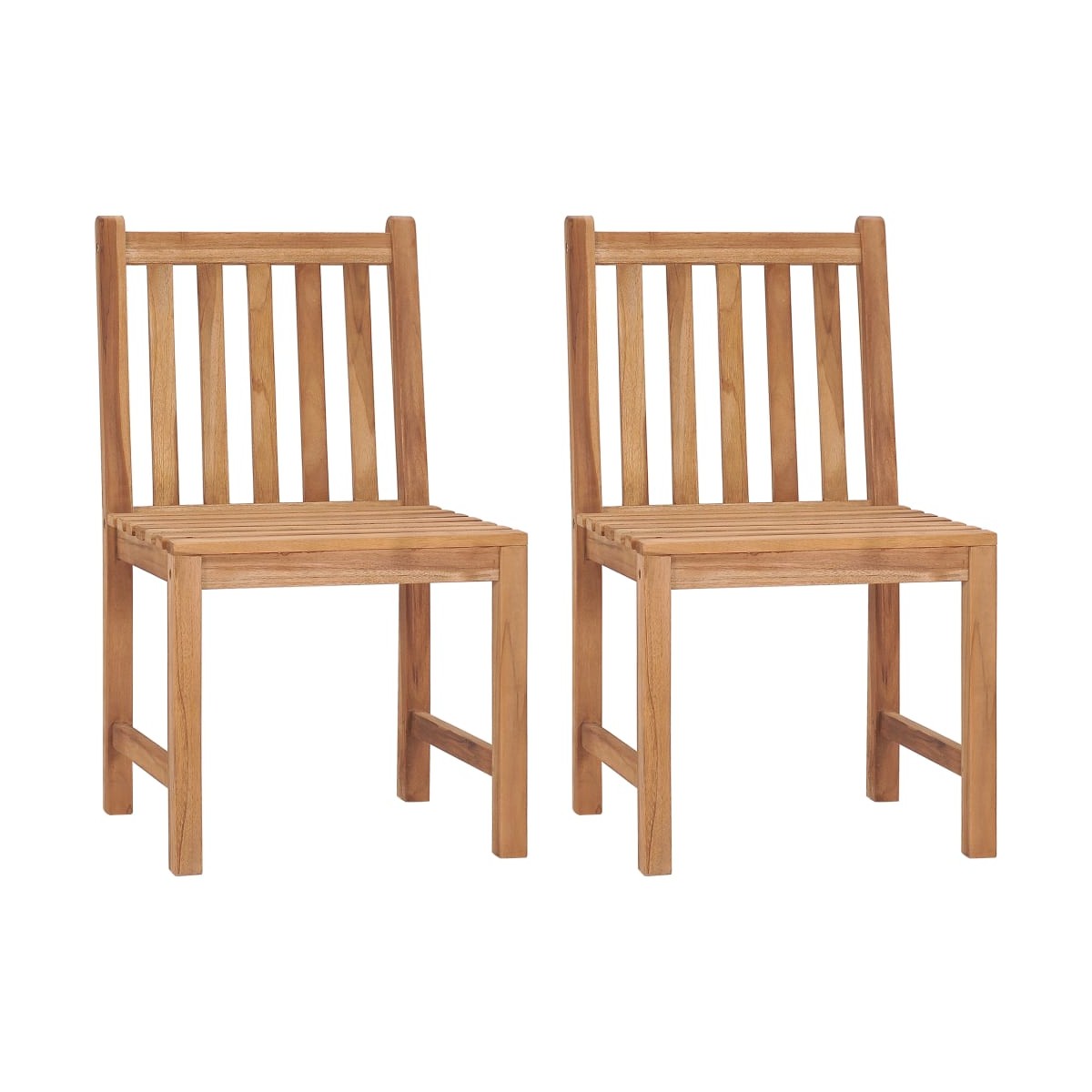 Este juego de sillas de jardín de madera extrafuerte te proporcionará un lugar perfecto para relajarte y disfrutar del sol en tu jardín o patio. Construidas con madera maciza de teca muy duradera, estos muebles de teca han sido secados al horno y lijados finamente para darles una apariencia muy lisa. La madera de teca es conocida por su excepcional robustez y resistencia a la intemperie, lo que la hace mucho más adecuada para muebles de jardín que cualquier otro tipo de madera. La madera de teca es la elección perfecta si quieres comprar un mueble de jardín duradero. Se les ha aplicado un hermoso acabado a base de agua para dar a la madera un color cálido. Las estables sillas de exterior tienen un aspecto refinado que encaja de inmediato en cualquier hogar. El cojín incluido es práctico y tiene una función decorativa.