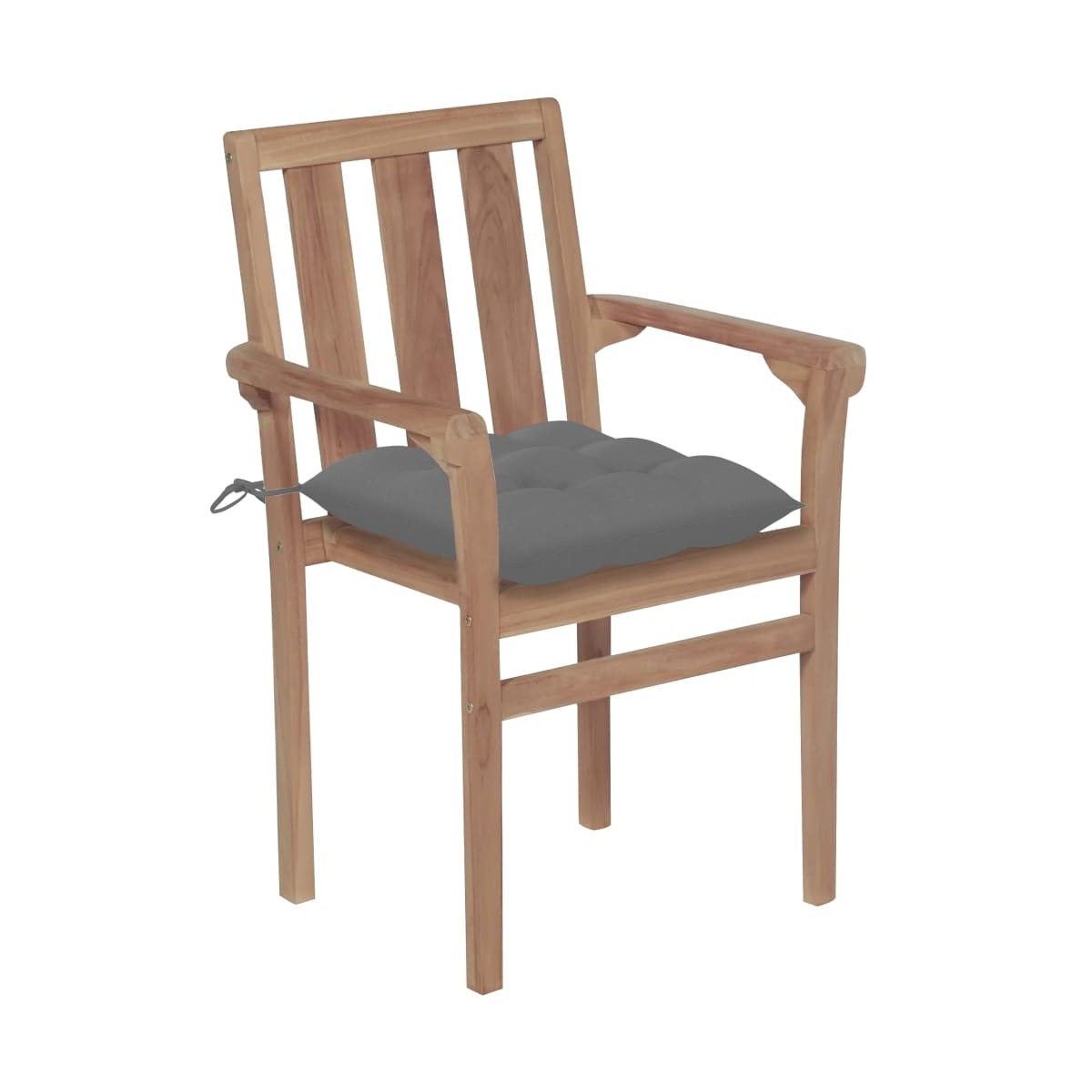 Este set de sillas de madera apilables de exterior tiene un diseño que no pasa de moda. Las sillas se adaptan a una gran variedad de lugares, como casas, oficinas, bares y cafeterías, gracias a su diseño sencillo y elegante. Hechas con teca extremadamente duradera, este juego de muebles de teca ha sido curado, secado al horno y luego lijado para darle una apariencia muy suave. La madera de teca es conocida por su excepcional robustez y resistencia a la intemperie, lo que la hace mucho más adecuada para muebles de jardín que cualquier otro tipo de madera. La madera de teca es la elección perfecta si quieres comprar un mueble de jardín duradero. Estas sillas son apilables cuando no se usan para ahorrar espacio de almacenamiento. El producto se aplica con un bonito acabado para darle a la madera un color cálido. Además, los cojines incluidos brindan mayor comodidad. Cada cojín tiene 2 juegos de cuerdas para fijarlo firmemente a la silla. Nota: Para prolongar la vida útil de los muebles de exterior, te recomendamos que los limpies con regularidad y no los dejes al aire libre sin protección innecesariamente.Limpieza: Usar una solución de jabón suaveAlmacenamiento: Si es posible, guarda el producto en un lugar fresco y seco en el interior. Si el producto se almacena al aire libre, protégelo con una funda impermeable. Limpia y seca el exceso de agua o nieve de las superficies planas después de una lluvia o nevada. Permite la ventilación para evitar daños relacionados con la humedad.
