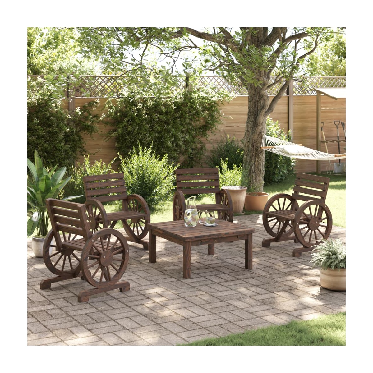 Estas sillas de jardín de madera serán un gran aporte para tu jardín, patio o terraza, permitiéndote disfrutar de un momento acogedor con tu familia o amigos. Madera maciza de abeto: La madera maciza de abeto es un material bonito y duradero que mantiene su integridad incluso cuando se expone a la humedad. No se seca ni se deforma, lo que la convierte en una opción fiable.Cómodo asiento: El respaldo y los reposabrazos aportan un plus de comodidad a la silla de exterior.Diseño atractivo: Los reposabrazos de los asientos de jardín cuentan con un diseño de rueda de carro que ofrece una imagen llamativa desde todos los ángulos. Información útil:Para asegurarte de que tus muebles de exterior se mantengan hermosos, recomendamos protegerlos con una funda impermeable.