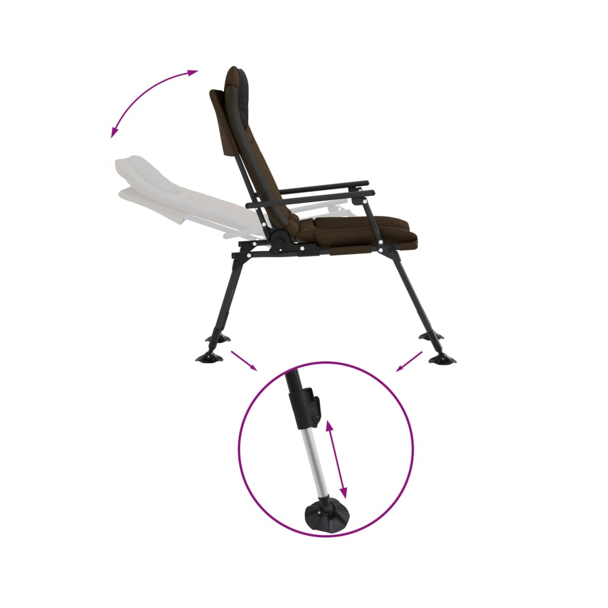 Esta silla de pesca es cómoda y portátil, por lo que es ideal para largas sesiones de pesca o simplemente para estar al aire libre. Duradera y resistente: La silla de pesca está hecha de acero con revestimiento en polvo, lo que garantiza su durabilidad y robustez para un uso prolongado.Cómoda y práctica: La silla de pesca cuenta con un acolchado de espuma, que está bien aislado y es fácil de limpiar, al mismo tiempo que proporciona una experiencia de asiento suave y cómoda. Además, tiene reposabrazos anchos y su respaldo se puede ajustar de 0 a 180 grados, lo que reduce la tensión en la espalda y la parte superior de las piernas y le permite sentarse cómodamente durante todo el día.Diseño práctico: Las patas ajustables de la silla de pesca están equipadas con pies de barro, lo que garantiza un uso cómodo incluso en terrenos irregulares y evita que se hundan en el suelo blando.Fácil de transportar: La silla de pesca tiene un diseño plegable y compacto que permite guardarla y transportarla fácilmente. Es una opción ideal para actividades al aire libre.