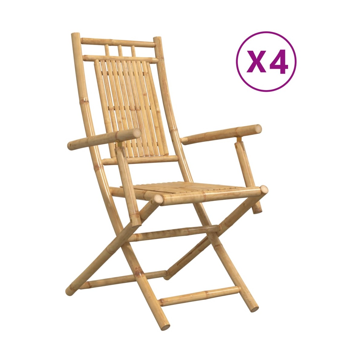 Estas sillas de jardín plegables de bambú tienen un diseño elegante y serán una excelente opción para cenar al aire libre en el jardín o en el patio. Duradero y resistente: Como material natural, el bambú es transpirable y tiene poco olor. Estas cualidades hacen que la silla plegable de bambú sea duradera, resistente al agua.Diseño plegable: La silla de comedor se puede plegar fácilmente cuando no se utilice, para facilitar su almacenamiento y transporte.Cómoda experiencia de asiento: Con reposabrazos y respaldo, la silla de exterior brinda la máxima comodidad. Información útil:Para asegurarte de que tus muebles de exterior se mantengan hermosos, recomendamos protegerlos con una funda impermeable.