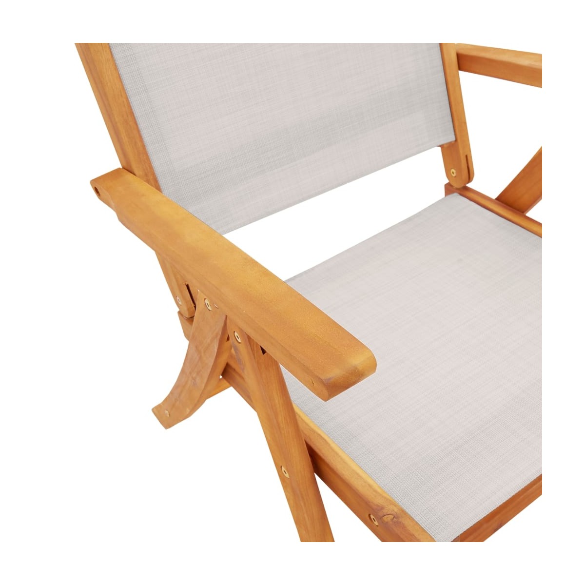 - Material: Madera maciza de acacia con un acabado de aceite, textilene