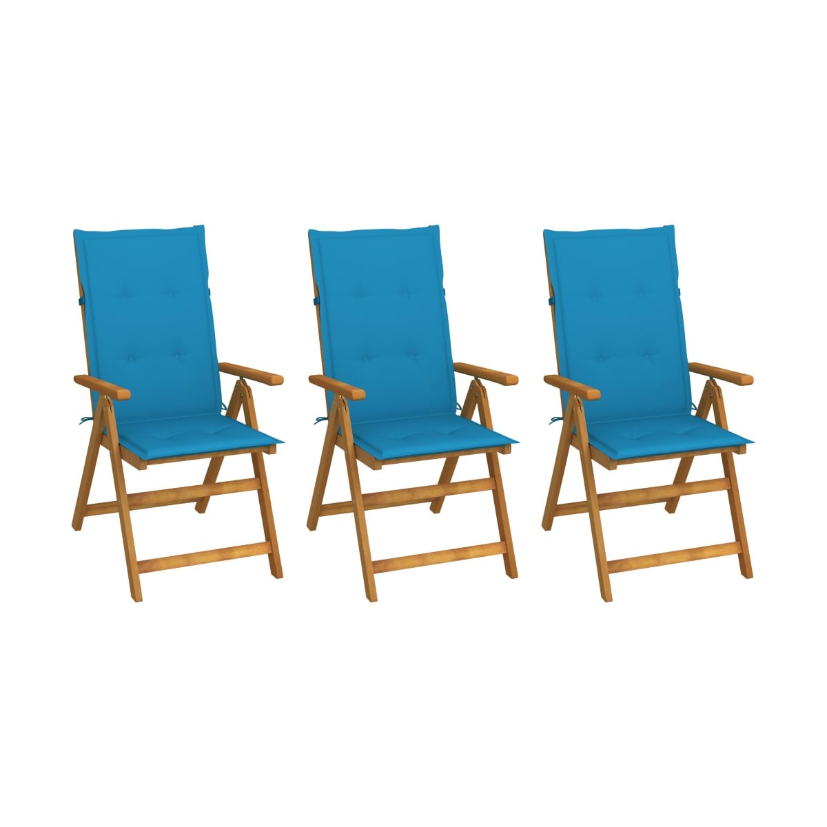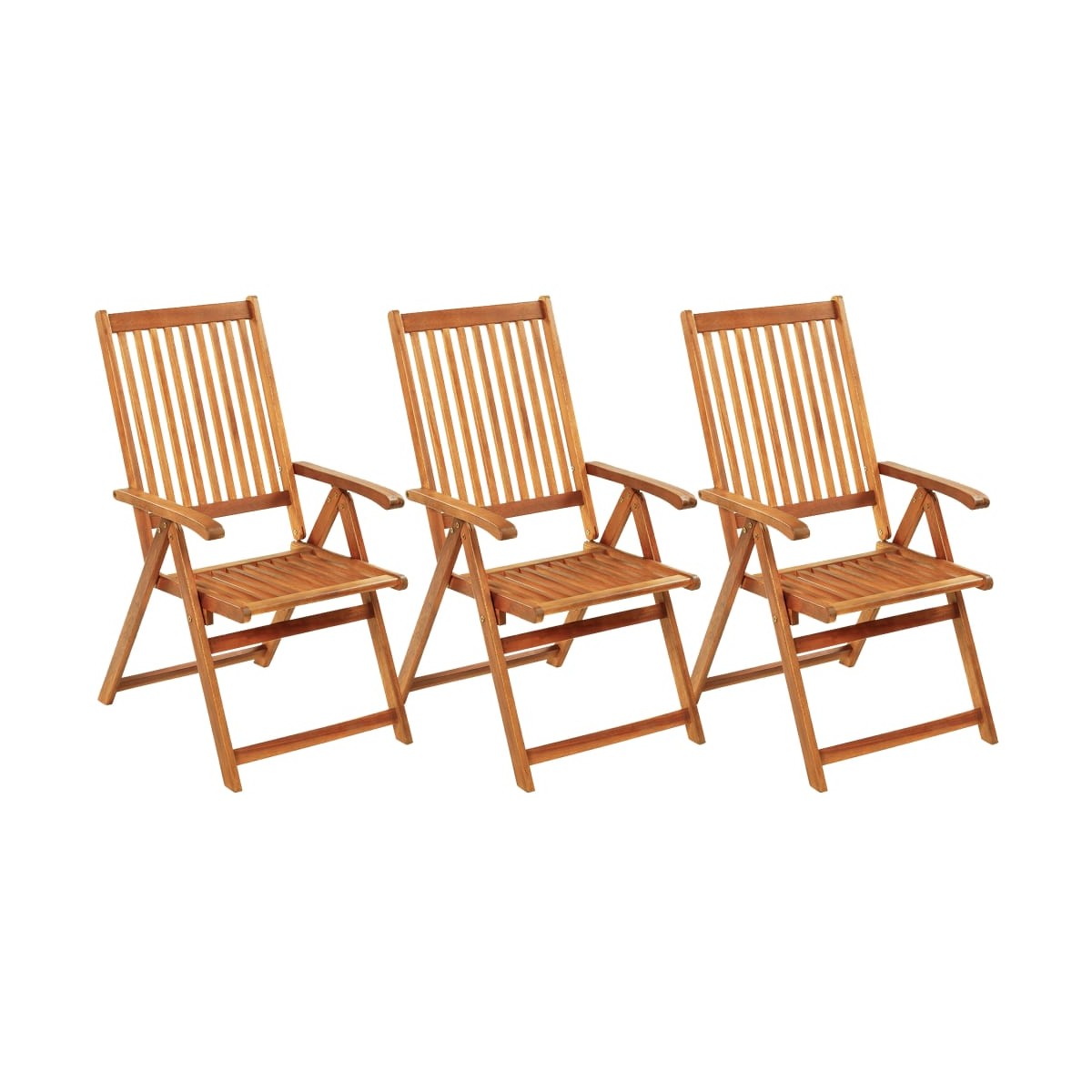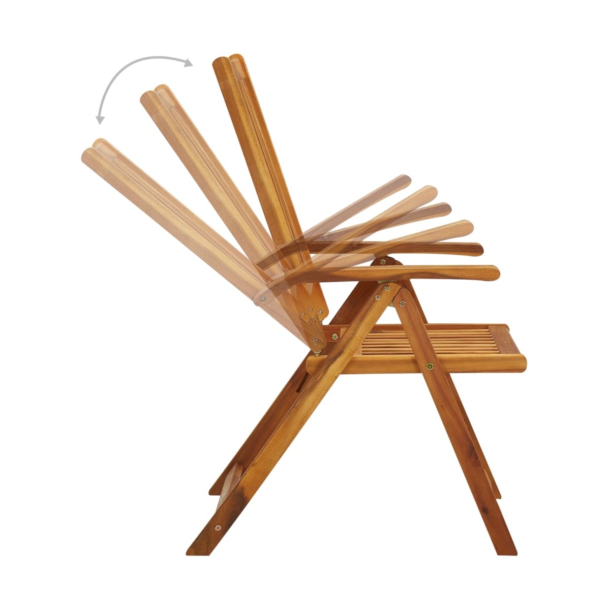 Este juego de sillas de jardín de madera con cojines ha sido diseñado para agregar un look vintage a cualquier cena en el jardín, la terraza o el patio. La silla plegable está hecha de madera maciza de acacia, una madera dura tropical, lo que la hace estable y duradera. La superficie con acabado de aceite es fácil de limpiar con un paño húmedo. La silla de comedor se puede ajustar en 5 posiciones, para brindarte una comodidad óptima al sentarte. También se puede plegar para ahorrar espacio cuando no la uses. Además, los cojines incluidos proporcionan mayor comodidad mientras descansas o cenas. Cada cojín cuenta con dos juegos de cuerdas en ambos lados y una correa elástica detrás del respaldo para fijarlo firmemente a la silla. La entrega incluye el hardware amarillo galvanizado.