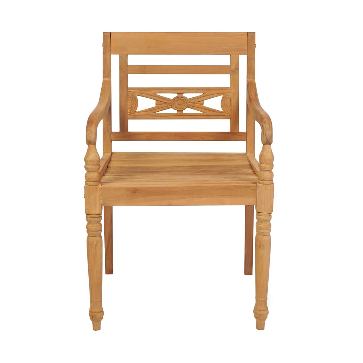 Estas cómodas y elegantes sillas de madera Batavia para jardín le dan un toque de encanto rústico a tu jardín o patio. Construidas con madera maciza de teca muy duradera, estos muebles de teca han sido secados al horno y lijados finamente para darles una apariencia muy lisa. La madera de teca es conocida por su excepcional robustez y resistencia a la intemperie, lo que la hace mucho más adecuada para muebles de jardín que cualquier otro tipo de madera. La madera de teca es la elección perfecta si quieres comprar un mueble de jardín duradero. Gracias a la superficie lijada, las sillas de jardín son resistentes a la intemperie y fáciles de limpiar. Son muy adecuadas para relajarte o cenar con amigos o familiares. Los cojines incluidos son prácticos y tienen una función decorativa.