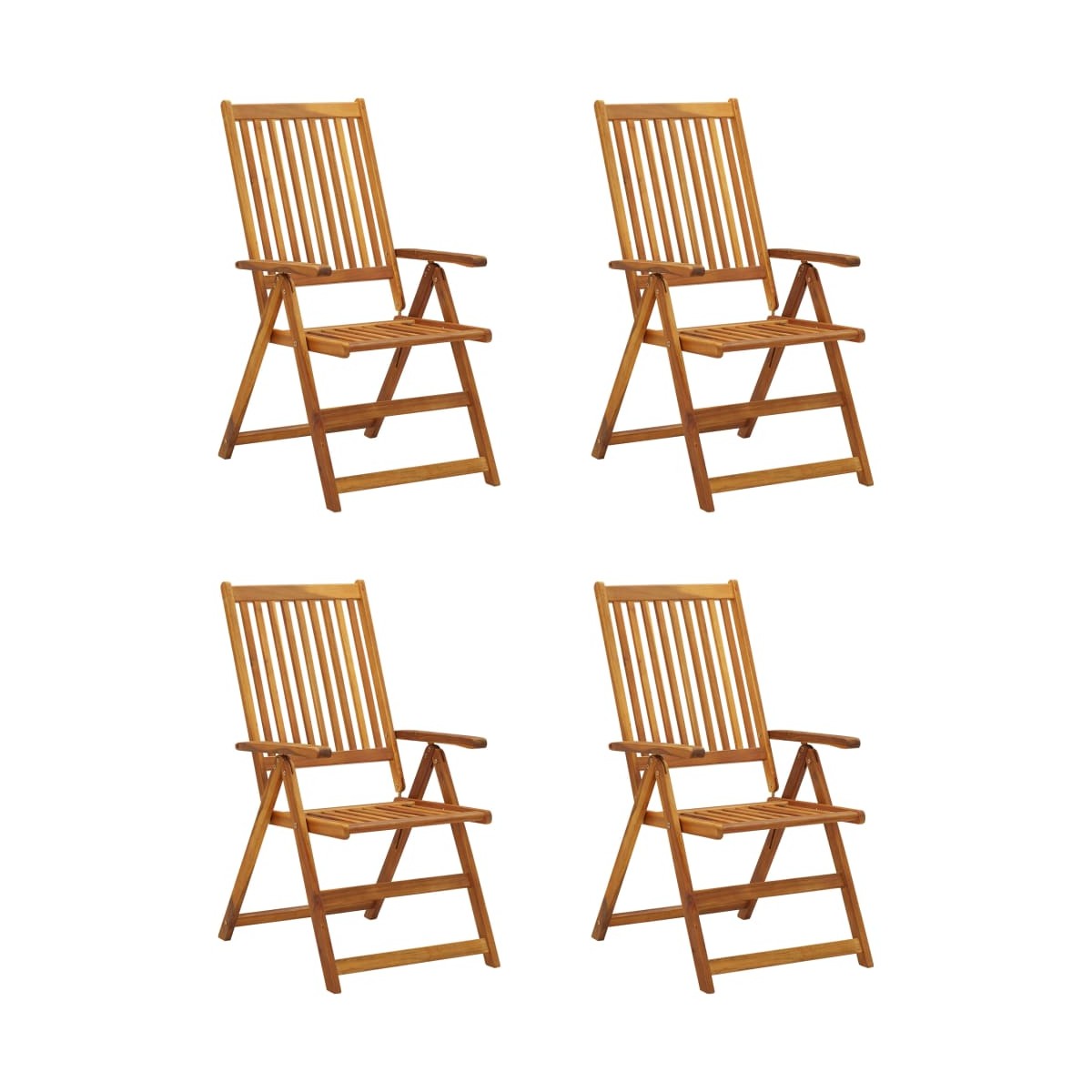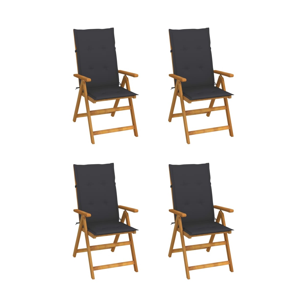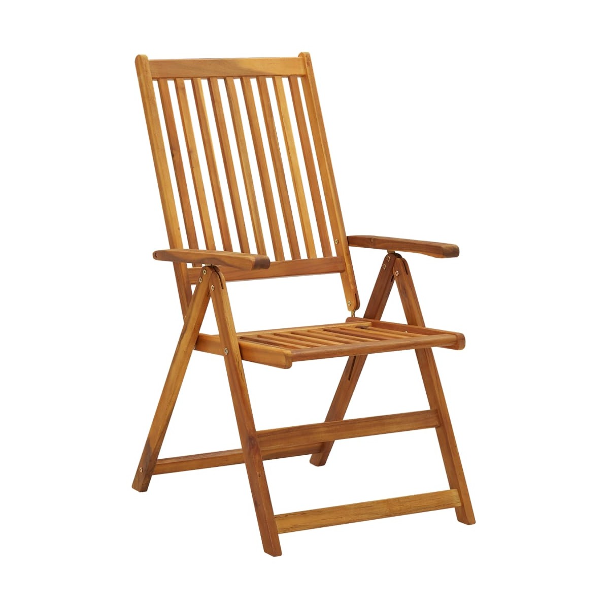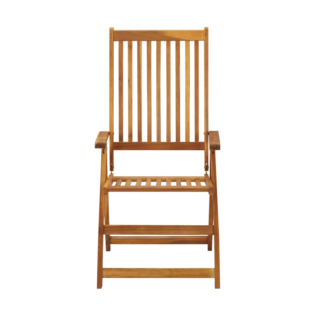 Este conjunto de sillas de madera reclinables para jardín con cojines ha sido diseñado para mejorar tu nivel de comodidad mientras te relajas al aire libre. ¡Es ideal para charlar con familiares y amigos o simplemente para disfrutar tomando el sol! Estas sillas de exterior están hechas de madera maciza de acacia con un acabado al aceite, una madera dura con vetas densas. La madera maciza de acacia tiene fuerza para soportar pesos y aguanta el desgaste y el paso del tiempo. Debido a la superficie con acabado al aceite, estas sillas son fáciles de limpiar con un paño húmedo. Además, los respaldos de estas sillas con reposabrazos se pueden regular en 5 posiciones de reclinado, para que siempre puedas encontrar la postura más agradable. Asimismo, los cojines incluidos ofrecen un plus de comodidad mientras descansas o comes. Cada cojín tiene una banda elástica y dos juegos de cuerdas para fijarlo sobre la silla de forma segura.