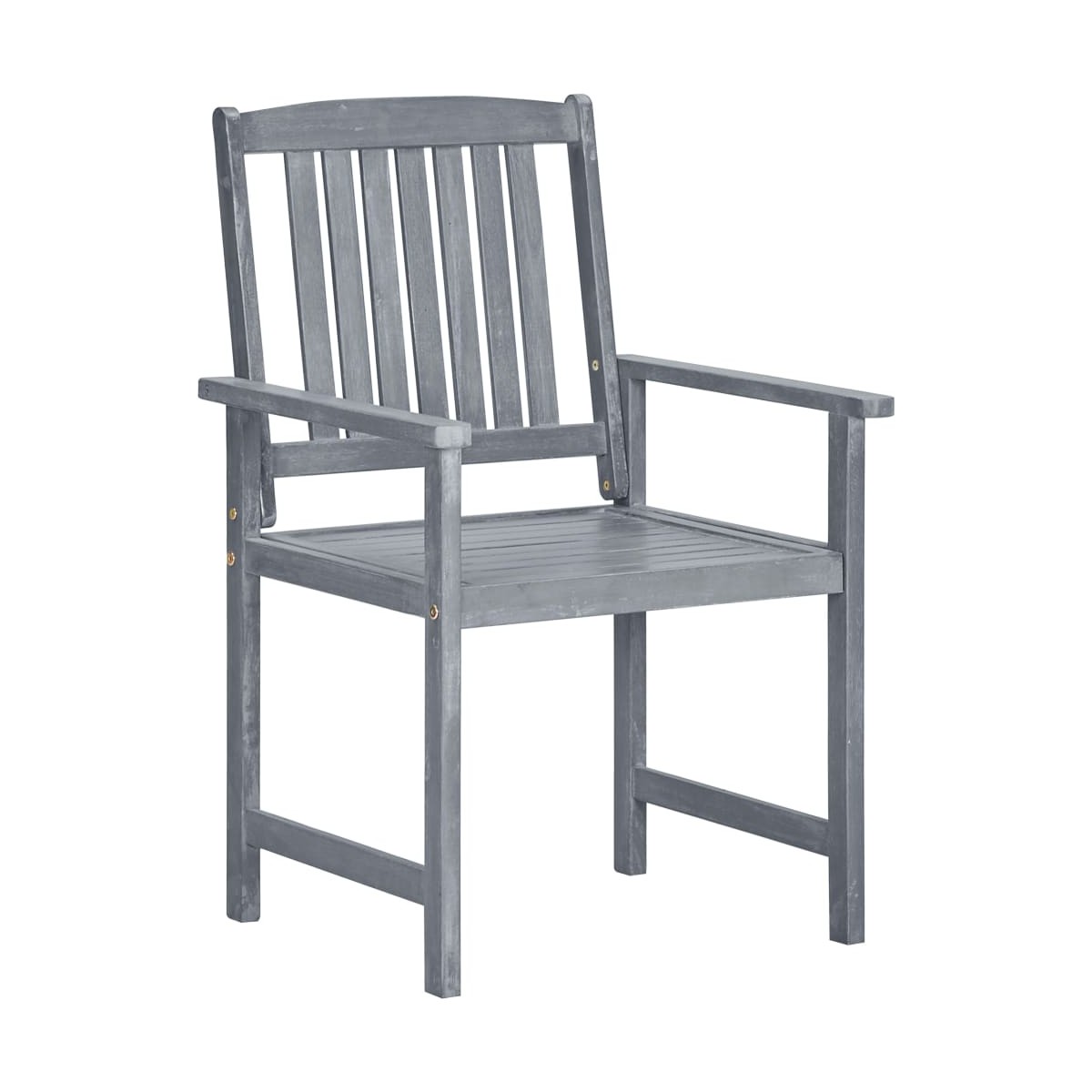 Añade un plus de comodidad al espacio al aire libre de tu casa con este moderno juego de sillas de director de madera. ¡Es perfecto para charlar con familiares y amigos o simplemente para disfrutar tomando el sol! Este juego de sillas de jardín está hecho de madera maciza de acacia con un acabado gris deslavado. La madera maciza de acacia es una madera dura con vetas densas, tiene fuerza para soportar pesos y aguanta el desgaste y el paso del tiempo. Este conjunto de sillas de madera es estable, duradera y resistente a la intemperie. Además, la superficie de las sillas es fácil de limpiar con un paño húmedo. Los cojines incluídos añaden una comodidad extra. Nota: Para prolongar la vida útil de los muebles de exterior, te recomendamos que los limpies con regularidad y no los dejes al aire libre sin protección innecesariamente.Limpieza: Usar una solución de jabón suaveAlmacenamiento: Si es posible, guarda el producto en un lugar fresco y seco en el interior. Si el producto se almacena al aire libre, protégelo con una funda impermeable. Limpia y seca el exceso de agua o nieve de las superficies planas después de una lluvia o nevada. Permite la ventilación para evitar daños relacionados con la humedad.