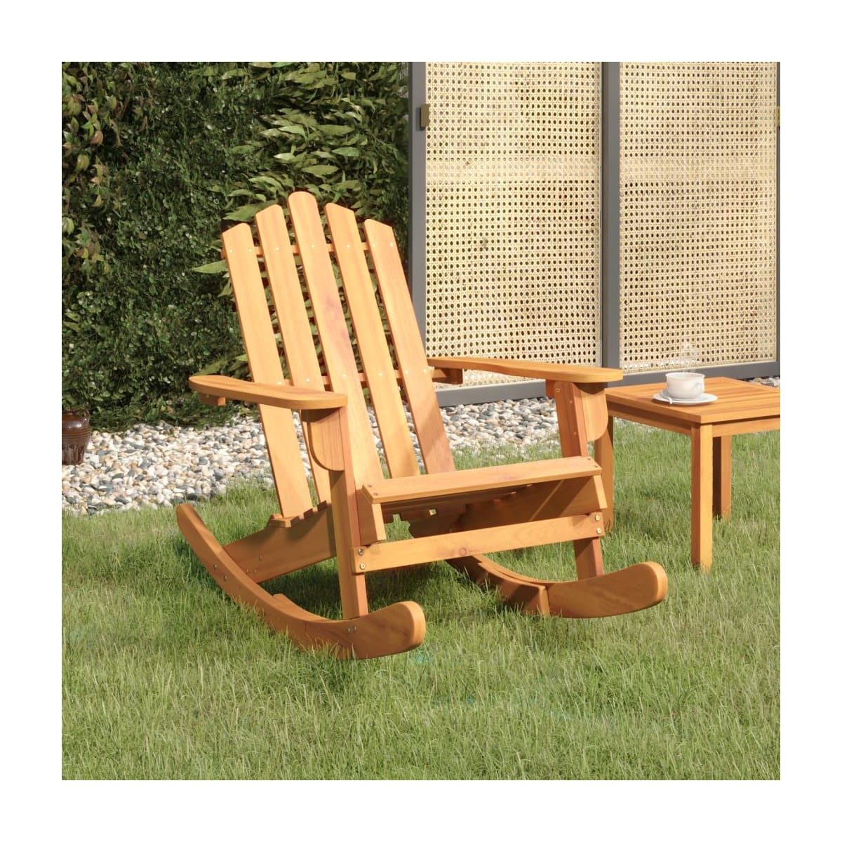 Relçajate en el jardín, la terraza o el balcón con esta atractiva silla mecedora con diseño Adirondack. Madera maciza de acacia: Esta silla de descanso está hecha de madera maciza de acacia. La madera maciza de acacia es un bonito material natural. La madera de acacia es una madera dura tropical, densa, robusta y duradera.Cómodo asiento: El respaldo alto y ligeramente inclinado y los anchos reposabrazos te permiten sentarte cómodamente después de un largo día.Diseño mecedora: Relájate sentándote cómodamente sobre esta silla mecedora Adirondack y disfruta de un balanceo suave y calmante. Información útil:Para facilitar al máximo el montaje, cada producto se entrega con un manual. Nota:Para asegurarte de que tus muebles de exterior se mantengan hermosos, recomendamos protegerlos con una funda impermeable.