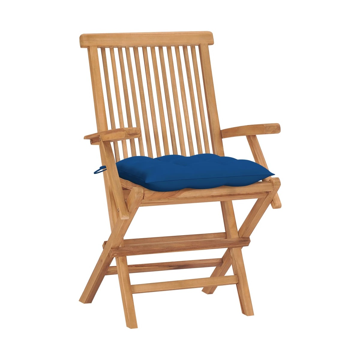 Este juego de sillas de jardín de madera consta de 4 unidades y está destinado a ser un gran aporte para el jardín, la terraza o el patio. Podrás relajarte y charlar con familiares y amigos o disfrutar del buen tiempo. Hecha con madera dura de teca muy duradera, este mueble de teca ha sido curado, secado en horno y luego lijado finamente para darle una apariencia muy suave. La madera de teca es conocida por su excepcional resistencia a la fuerza y al clima, por lo que es mucho más adecuada para muebles de jardín que cualquier otro tipo de madera. La madera de teca es la elección perfecta si deseas adquirir un mueble de jardín duradero. La superficie lijada se limpia fácilmente con un paño húmedo. Además, estas sillas de jardín son ligeras, lo que las hace totalmente flexibles y fáciles de mover. Si no las utilizas, las sillas de madera pueden plegarse para ahorrar espacio. Asimismo, los cojines mullidos refuerzan la comodidad del asiento.
