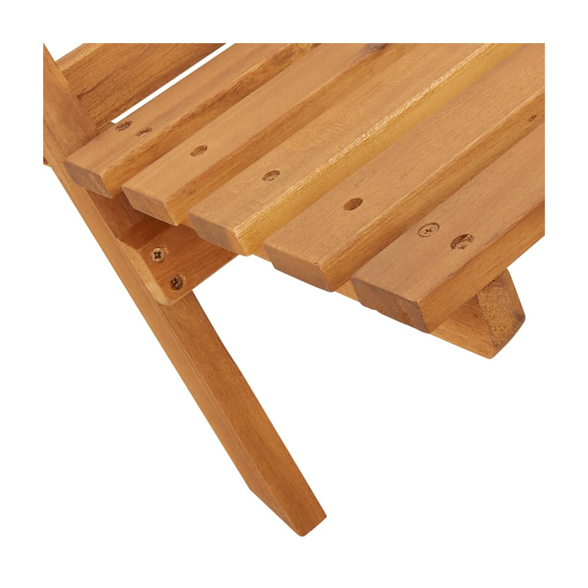 ¡Relájate y disfruta del aire libre en estas cómodas sillas de jardín!Robusta y estable: La madera maciza de acacia es conocida por su resistencia y durabilidad. Sus diversos colores y patrones de vetas únicos le dan una apariencia atractiva. Con buena estabilidad y resistencia a la intemperie, es ideal para fabricar muebles de interior y exterior.Fácil de transportar y almacenar: la silla se puede plegar con facilidad cuando no se use, para facilitar el almacenamiento y el transporte.Respaldo inclinado: El diseño inclinado del respaldo puede ofrecerte una experiencia reclinable más cómoda.Diseño práctico: La silla de exterior elimina el diseño de reposabrazos y sólo viene con respaldo, lo que te permite tener más libertad de movimiento sin dejar de disfrutar de una experiencia cómoda.Varios usos: La silla tiene una amplia gama de usos y puede satisfacer fácilmente tus necesidades en cualquier entorno al aire libre, como jardines, patios, balcones, etc. Información útil:Para asegurarte de que tus muebles de exterior se mantengan hermosos, recomendamos protegerlos con una funda impermeable.