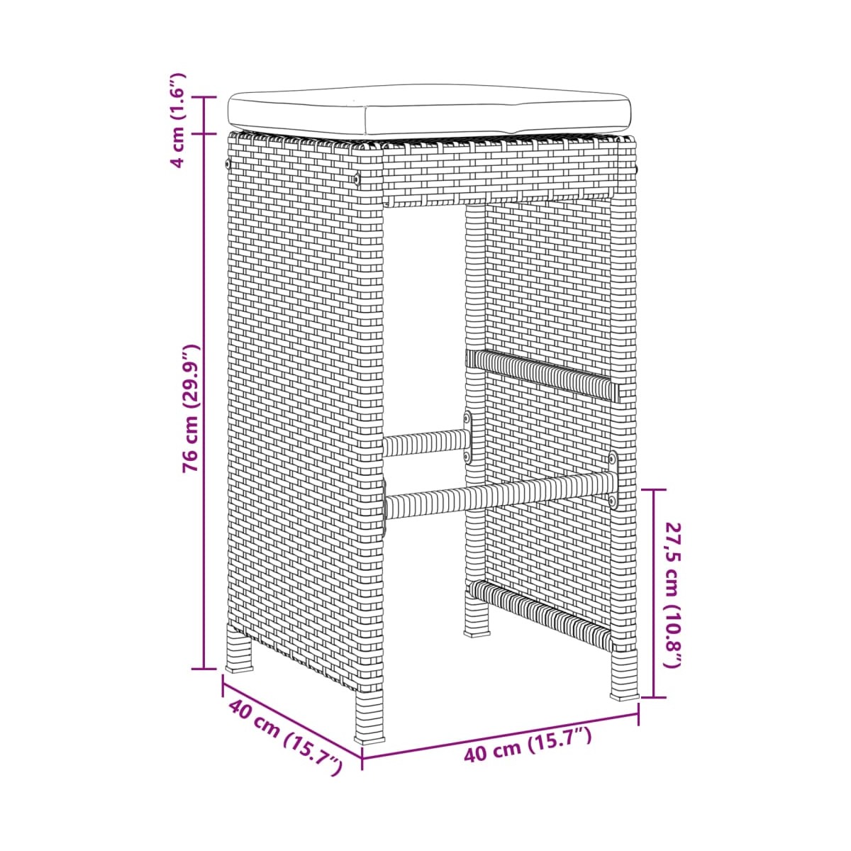 ¡Relájate y disfruta del aire libre en estos cómodos taburetes altos de jardín! Material duradero: El ratán sintético, también conocido como ratán sintético, es un material sintético resistente y de bajo mantenimiento que se parece al ratán natural. Es ligero, fácil de limpiar y se usa comúnmente para muebles de exterior debido a su durabilidad y propiedades resistentes a la intemperie.Experiencia de asiento cómoda: Estos muebles de exterior, completos con cojines acolchados gruesos, ofrecen una experiencia de asiento cómoda.Funda desenfundable y lavable: Estos cojines de asiento cuentan con fundas desenfundables para facilitar el lavado y mantenimiento. Estructura robusta y estable: La estructura de acero con recubrimiento en polvo garantiza que el mueble de jardín sea resistente y estable para usarlo a diario al aire libre. Información útil:Para asegurarte de que tus muebles de exterior se mantengan hermosos, recomendamos protegerlos con una funda impermeable.