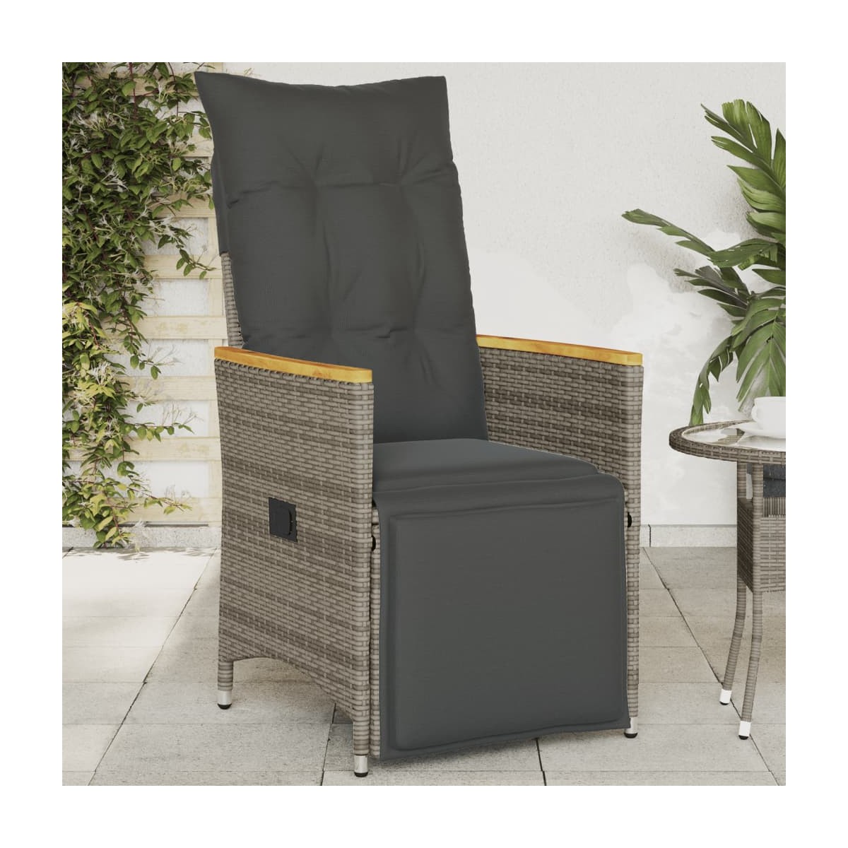 ¡Relájate y disfruta del aire libre en esta cómoda silla de jardín reclinable! Material duradero: El ratán PE, también conocido como ratán sintético, es un material sintético resistente y de bajo mantenimiento que se parece al ratán natural. Es ligero, fácil de limpiar y se usa comúnmente para muebles de exterior debido a su durabilidad y propiedades resistentes a la intemperie.Respaldo y reposapiés ajustables: este asiento de jardín tiene un asa. Puedes ajustar el respaldo y el reposapiés a cualquier posición tirando del asa y devolverlos rápidamente a sus posiciones originales.Experiencia de asiento cómoda: Estos muebles de exterior, completos con cojines acolchados gruesos, ofrecen una experiencia de asiento cómoda.Funda extraíble y lavable: El cojín del asiento cuenta con una funda extraíble para facilitar el lavado y mantenimiento. El cojín del respaldo tiene una solapa en la parte posterior para facilitar la fijación al respaldo.Estructura robusta y estable: La estructura de acero con recubrimiento en polvo garantiza que el mueble de jardín sea resistente y estable para usarlo a diario al aire libre. Información útil:Para asegurarte de que tus muebles de exterior se mantengan hermosos, recomendamos protegerlos con una funda impermeable.