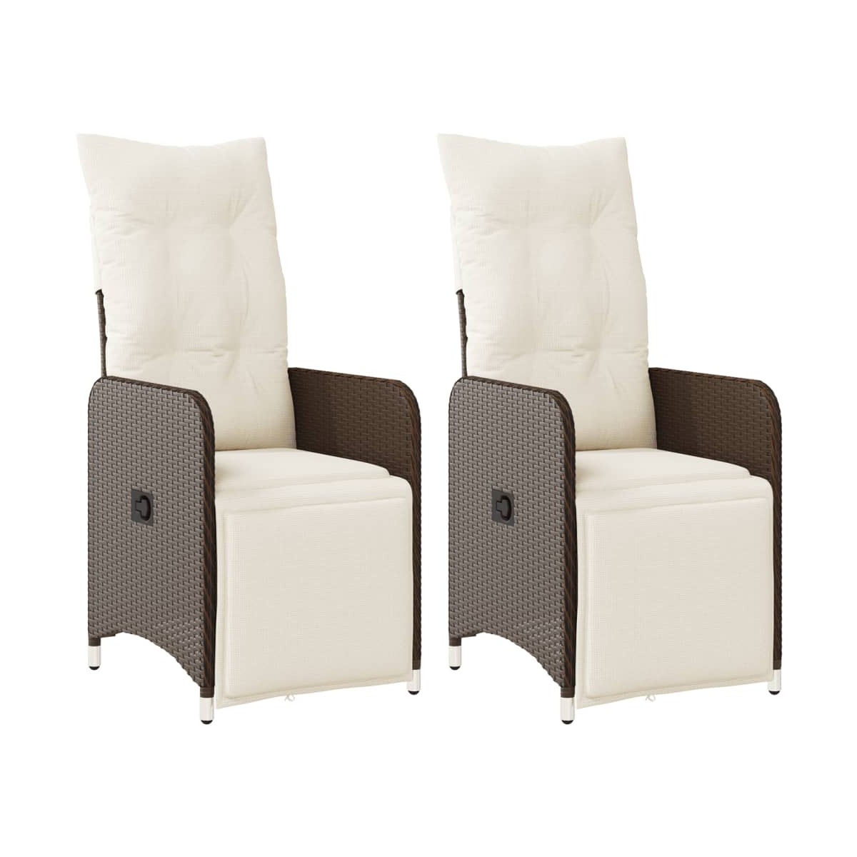 ¡Relájate y disfruta del aire libre en estas cómodas sillas de jardín reclinables! Material duradero: El ratán PE, también conocido como ratán sintético, es un material sintético resistente y de bajo mantenimiento que se parece al ratán natural. Es ligero, fácil de limpiar y se usa comúnmente para muebles de exterior debido a su durabilidad y propiedades resistentes a la intemperie.Respaldo y reposapiés ajustables: este asiento de jardín tiene un asa. Puedes ajustar el respaldo y el reposapiés a cualquier posición tirando del asa y devolverlos rápidamente a sus posiciones originales.Experiencia de asiento cómoda: Estos muebles de exterior, completos con cojines acolchados gruesos, ofrecen una experiencia de asiento cómoda.Funda desenfundable y lavable: Estos cojines de asiento cuentan con fundas desenfundables para facilitar el lavado y mantenimiento.Estructura robusta y estable: La estructura de acero con recubrimiento en polvo garantiza que el mueble de jardín sea resistente y estable para usarlo a diario al aire libre. Información útil:Para asegurarte de que tus muebles de exterior se mantengan hermosos, recomendamos protegerlos con una funda impermeable.