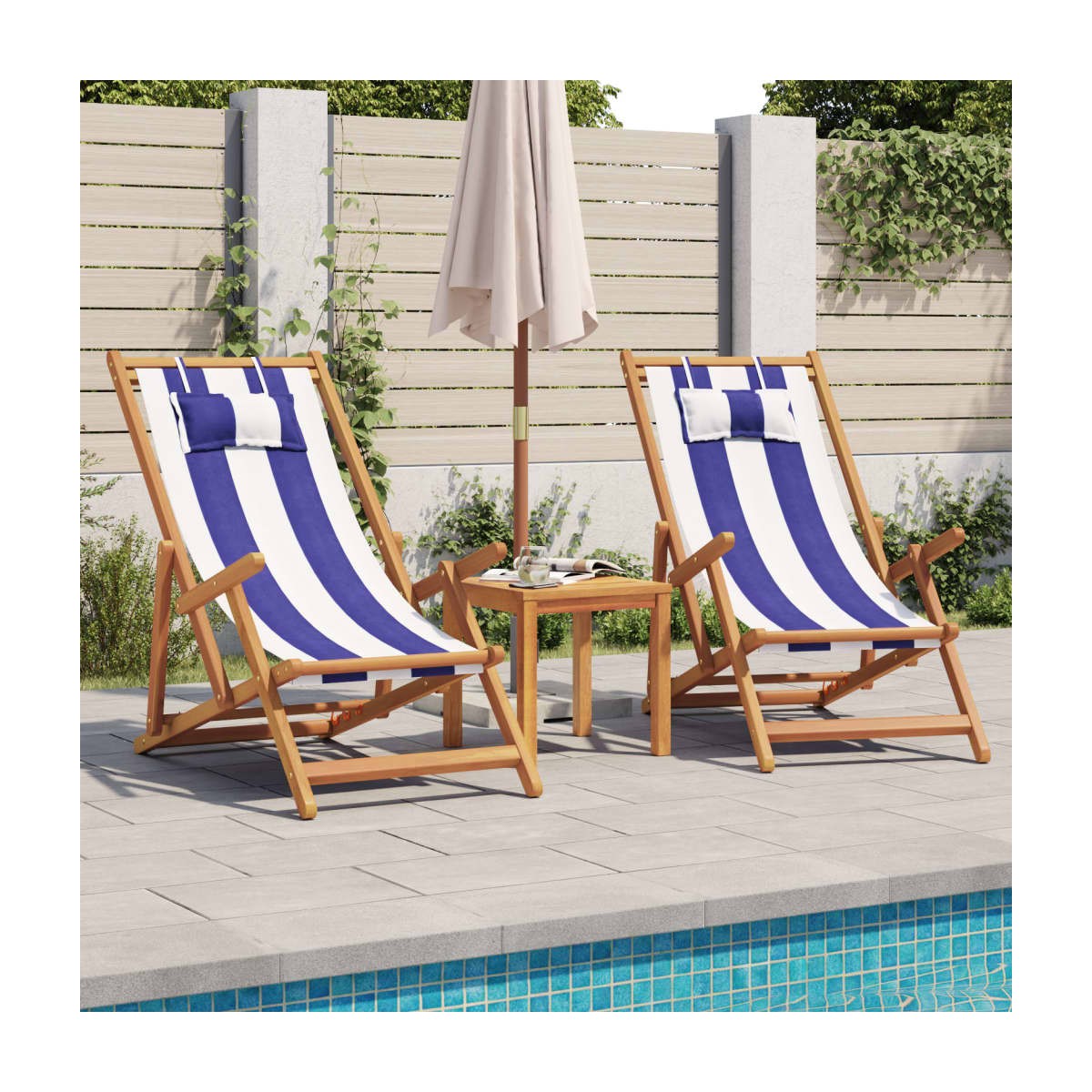 ¡Disfruta de tu tiempo libre con estas cómodas sillas de playa de madera! Las sillas reclinables serán un gran aporte para tu jardín, patio y balcón. Tela duradera: La tela posee un aspecto sencillo y limpio, además de ser transpirable y duradera.Estructura robusta: La tumbona está construida con una estructura de madera maciza de eucalipto, que garantiza robustez y estabilidad. La madera maciza de eucalipto es un hermoso material natural. La madera de eucalipto es extremadamente densa e hidrófuga. Este material es conocido por su intenso color marrón rojizo.Ajustable en 3 posiciones: El asiento de playa se puede ajustar en 3 configuraciones reclinables para una comodidad óptima.Cómodo asiento: La almohada y los reposabrazos aportan un plus de comodidad a la silla de exterior.Función plegable: La silla de playa de madera se puede plegar para facilitar su transporte y almacenamiento cuando no está en uso. Información útil:Para asegurarte de que tus muebles de exterior se mantengan hermosos, recomendamos protegerlos con una funda impermeable.