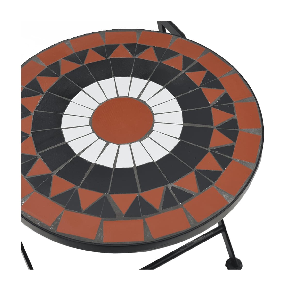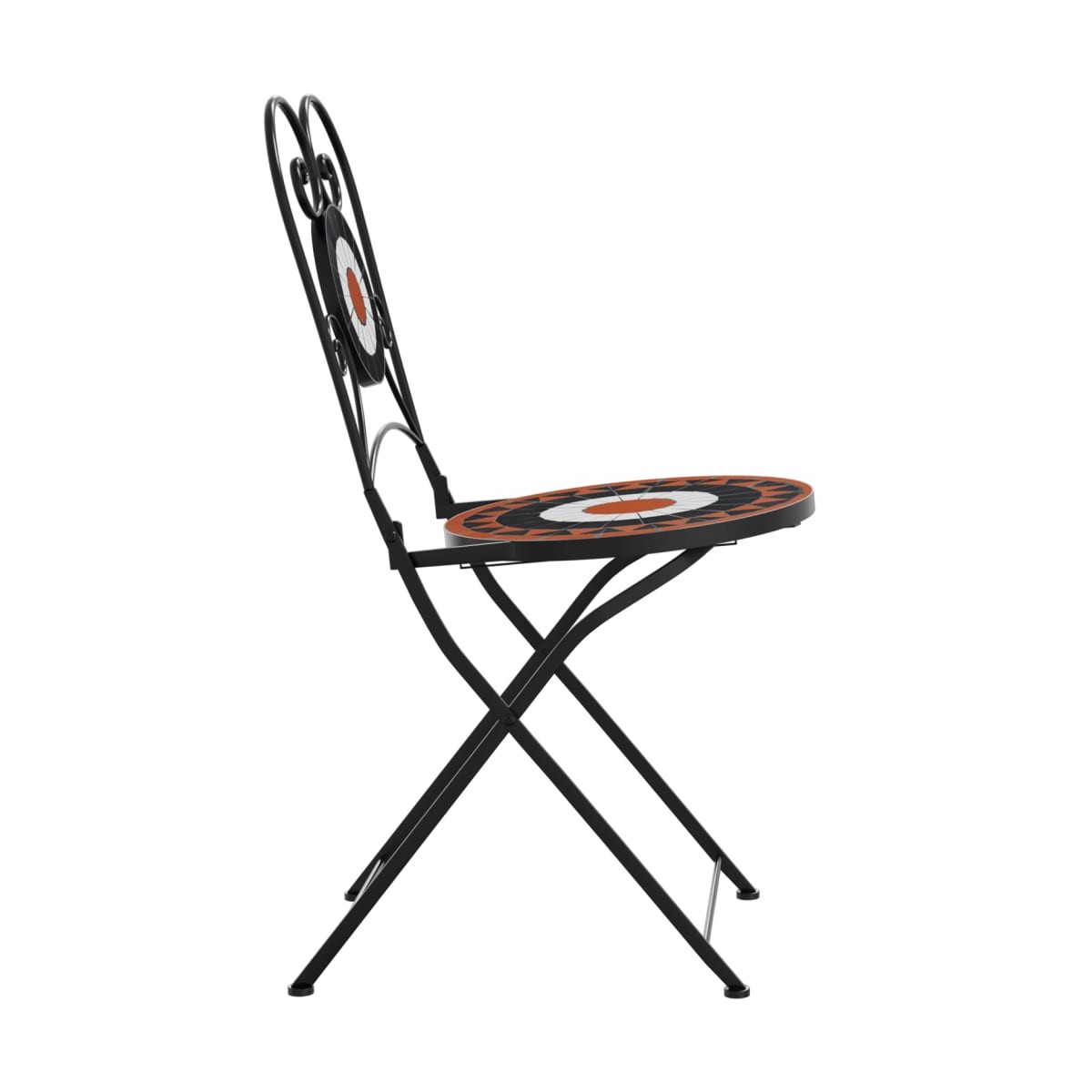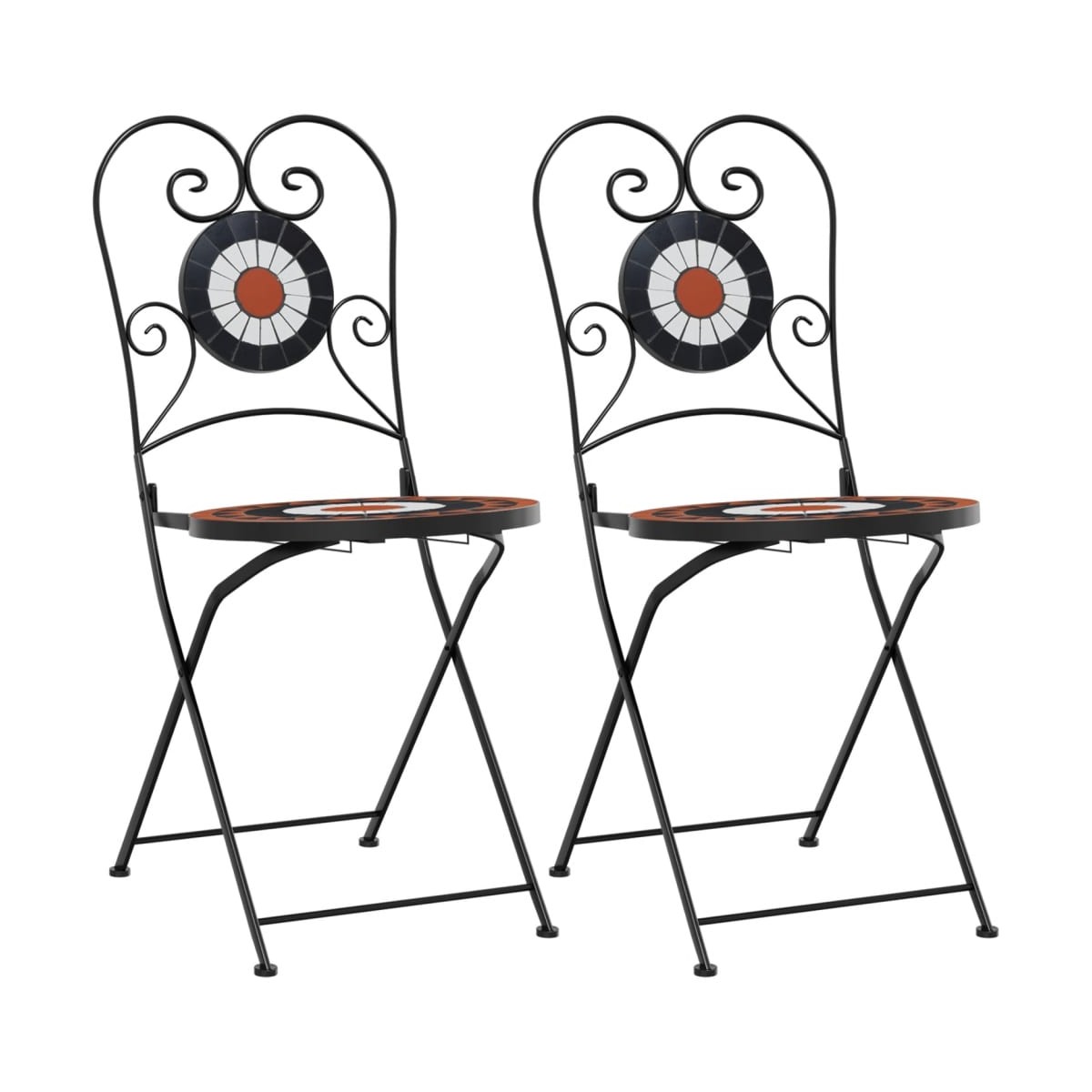 Estas sillas de bistró, con diseño de mosaico, se convertirán en el centro de atención de tu jardín, balcón o patio. Tablero estable y fácil de limpiar: Estas sillas de jardín tienen un tablero de cerámica que es resistente, duradero y fácil de limpiar con un paño húmedo.Estructura robusta y estable: La estructura de hierro con recubrimiento en polvo garantiza que las sillas plegables sean resistentes y estables para el uso diario en interiores o exteriores.Diseño plegable: La silla de comedor bistró también se puede plegar para ahorrar espacio cuando no está en uso.Diseño en mosaico: Las sillas de exterior ayudan a crear un ambiente mediterráneo en los entornos interiores o exteriores con el diseño de mosaico. Información útil:Para asegurarte de que tus muebles de exterior se mantengan hermosos, recomendamos protegerlos con una funda impermeable.