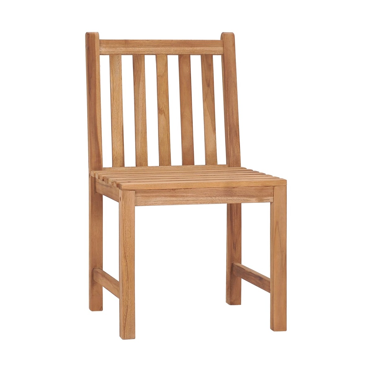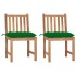 Este juego de sillas de jardín de madera extrafuerte te proporcionará un lugar perfecto para relajarte y disfrutar del sol en tu jardín o patio. Construidas con madera maciza de teca muy duradera, estos muebles de teca han sido secados al horno y lijados finamente para darles una apariencia muy lisa. La madera de teca es conocida por su excepcional robustez y resistencia a la intemperie, lo que la hace mucho más adecuada para muebles de jardín que cualquier otro tipo de madera. La madera de teca es la elección perfecta si quieres comprar un mueble de jardín duradero. Se les ha aplicado un hermoso acabado a base de agua para dar a la madera un color cálido. Las estables sillas de exterior tienen un aspecto refinado que encaja de inmediato en cualquier hogar. El cojín incluido es práctico y tiene una función decorativa.