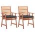 Este moderno juego de sillas de comedor de madera con cojines dará un toque de estilo natural a tu jardín, terraza o patio. Este juego de sillas de madera será una gran opción para cenar al aire libre. Estas sillas de jardín están hechas de madera maciza de acacia, una madera dura tropical, que es resistente a la intemperie y duradera para años de uso. La superficie con acabado de aceite es fácil de limpiar con un paño húmedo. El diseño de listones aportará un encanto rústico. Además, los cojines incluidos brindan mayor comodidad al sentarse. Está confeccionado en 100% poliéster que ha sido tratado para hacerlo impermeable. Cada cojín tiene dos juegos de cuerdas para fijarlo firmemente a la silla.