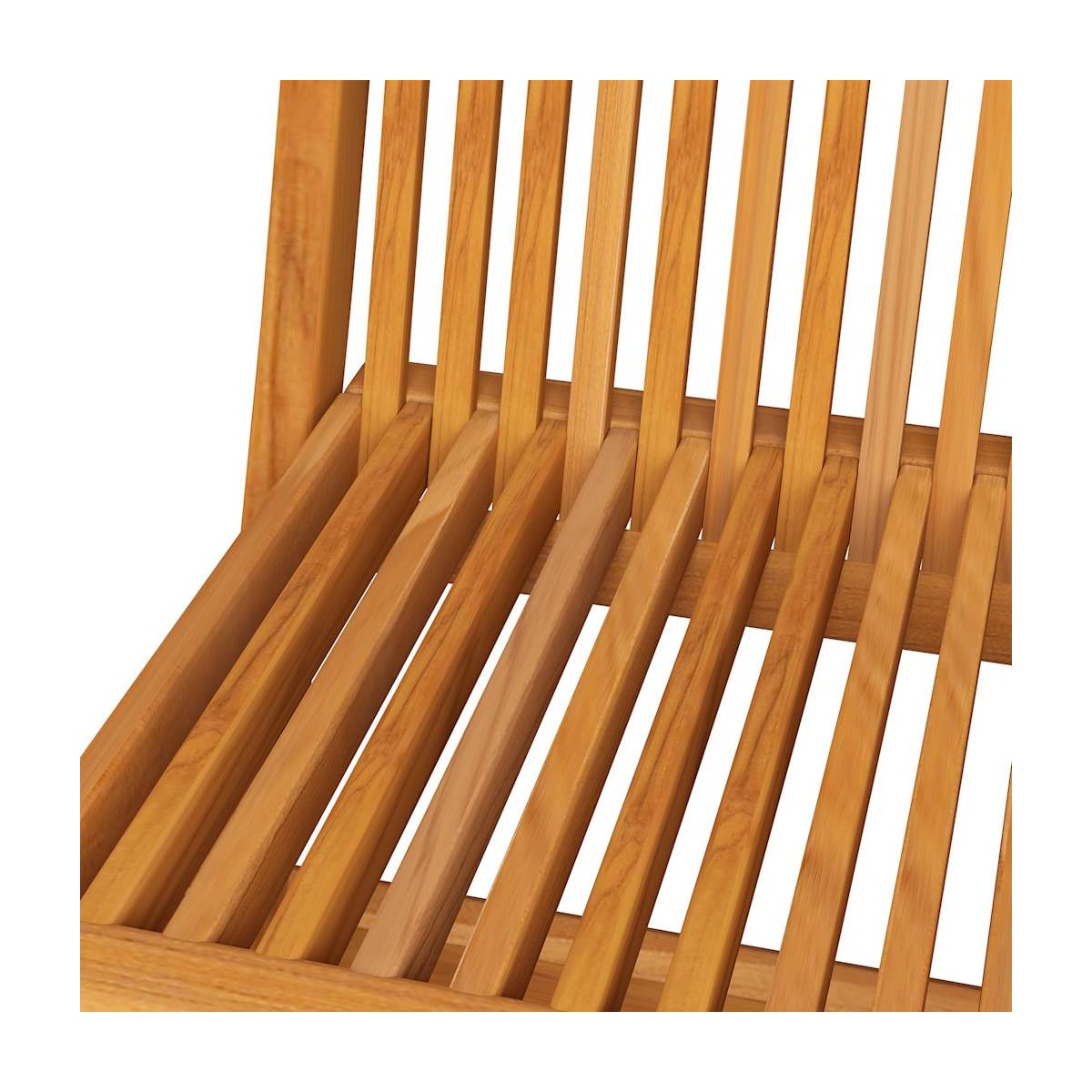 Estas sillas de jardín plegables de madera, con un diseño sencillo pero elegante, están diseñadas para brindar una cómoda experiencia de asiento. Construidas con madera maciza de teca muy duradera, estos muebles de teca han sido secados al horno y lijados finamente para darles una apariencia muy lisa. La madera de teca es conocida por su excepcional robustez y resistencia a la intemperie, lo que la hace mucho más adecuada para muebles de jardín que cualquier otro tipo de madera. La madera de teca es la elección perfecta si quieres comprar un mueble de jardín duradero. La superficie lijada es fácil de limpiar con un paño húmedo. Estas sillas de comedor de jardín también son ligeras, lo que las hace completamente flexibles y fáciles de mover. Las sillas de exterior se pueden plegar fácilmente cuando no están en uso. Además, los cojines de asiento incluidos también brindan mayor comodidad al sentarse. Nota: Para prolongar la vida útil de los muebles de exterior, te recomendamos que los limpies con regularidad y no los dejes al aire libre sin protección innecesariamente.Limpieza: Usa una solución de jabón suaveAlmacenamiento: Si es posible, guarda el producto en un lugar fresco y seco en el interior. Si el producto se almacena al aire libre, protégelo con una funda impermeable. Limpia y seca el exceso de agua o nieve de las superficies planas después de una lluvia o nevada. Permite la ventilación para evitar daños relacionados con la humedad.