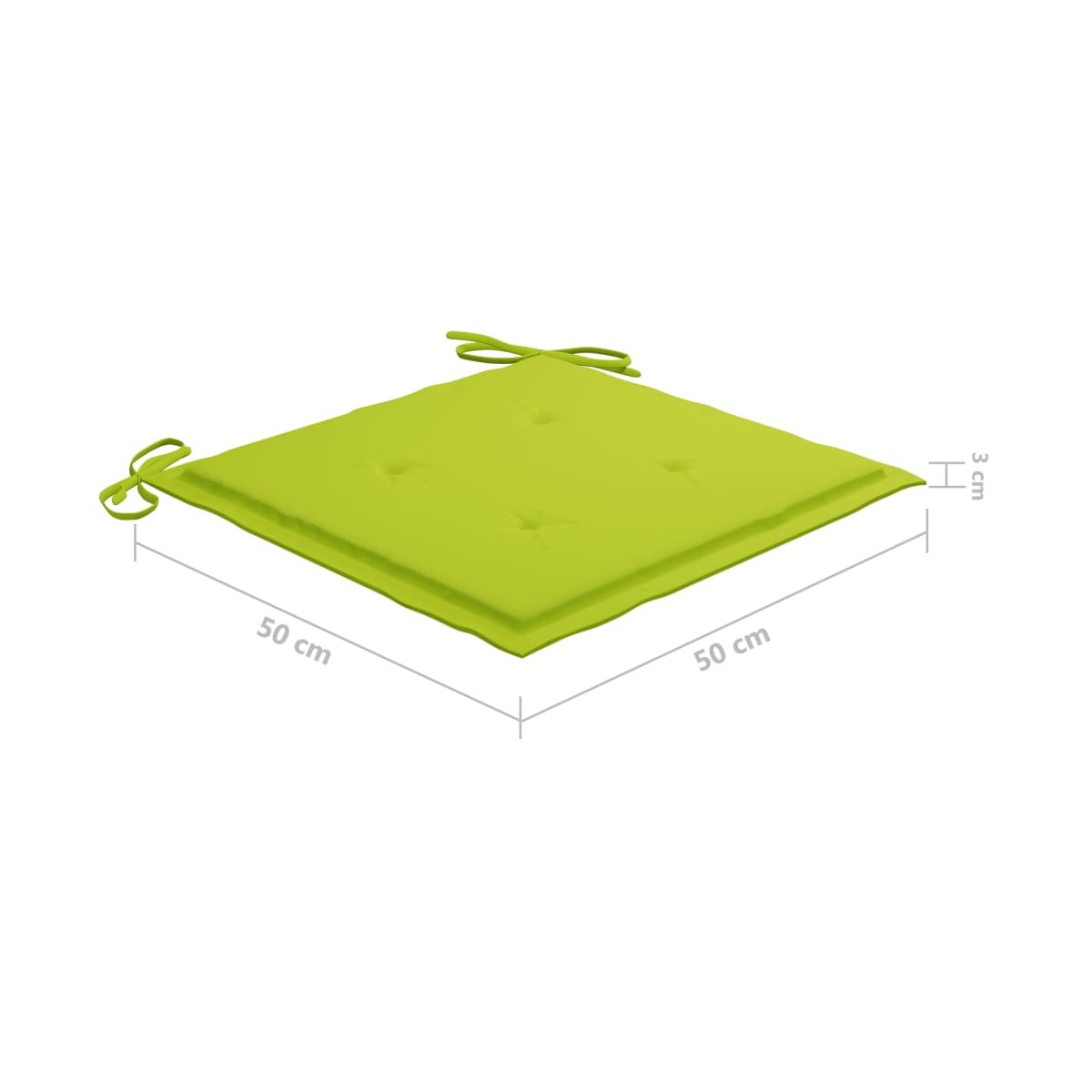 Estas cómodas y elegantes sillas Batavia de madera con cojines quedarán simplemente deslumbrantes en el jardín o en el patio. Hechos de madera dura de teca muy duradera, este juego de muebles de teca han sido curados, secados al horno y lijados finamente para darles una apariencia muy lisa. La madera de teca es conocida por su excepcional robustez y resistencia a la intemperie, lo que la hace mucho más adecuada para muebles de jardín que cualquier otro tipo de madera. La madera de teca es la elección perfecta si quieres comprar un mueble de jardín duradero. Gracias a la superficie finamente lijada, las sillas son resistentes a la intemperie y fáciles de limpiar, y dará un toque de encanto rústico al jardín. Son muy adecuadas para relajarte o comer con tus amigos o familiares. Asimismo, los cojines incluidos proporcionan un plus de comodidad. Cada cojín tiene 2 juegos de cuerdas para fijarlo firmemente sobre la silla. Nota: Para prolongar la vida útil de los muebles de exterior, te recomendamos que los limpies con regularidad y no los dejes al aire libre sin protección innecesariamente.Limpieza: Usar una solución de jabón suaveAlmacenamiento: Si es posible, guarda el producto en un lugar fresco y seco en el interior. Si el producto se almacena al aire libre, protégelo con una funda impermeable. Limpia y seca el exceso de agua o nieve de las superficies planas después de una lluvia o nevada. Permite la ventilación para evitar daños relacionados con la humedad.