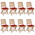 Estas sillas plegables de madera maciza de acacia con cojines proporcionan un lugar perfecto para relajarte y disfrutar del sol en el jardín o en el patio. Estas sillas de jardín están hechas de madera de acacia maciza, lo que las hace robustas y estables. La madera de acacia maciza tiene fuerza para soportar peso y es resistente al desgaste del tiempo. Por eso, estas sillas de jardín brindan años de relajación. Además, las sillas se pueden plegar para ahorrar espacio cuando no están en uso. Los cojines incluidos agregan comodidad extra. Cada cojín cuenta con dos juegos de cuerdas para fijarlo firmemente a la silla. Nota: Para prolongar la vida útil de los muebles de exterior, te recomendamos que los limpies con regularidad y no los dejes al aire libre sin protección innecesariamente.Limpieza: Usa una solución de jabón suaveAlmacenamiento: Si es posible, guarda el producto en un lugar fresco y seco en el interior. Si el producto se almacena al aire libre, protégelo con una funda impermeable. Limpia y seca el exceso de agua o nieve de las superficies planas después de una lluvia o nevada. Permite la ventilación para evitar daños relacionados con la humedad.