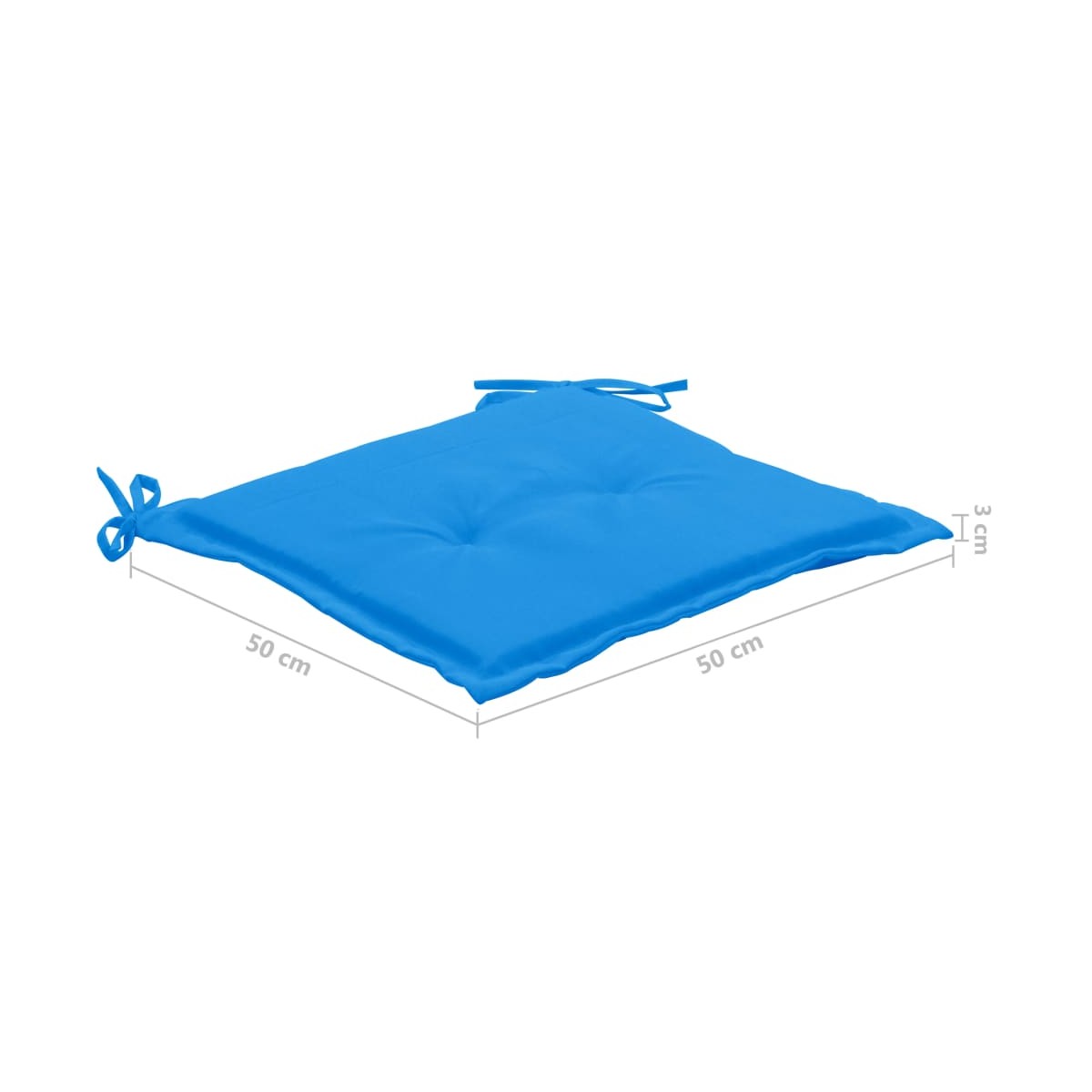 Agrega comodidad extra en tu jardín o patio con este juego de sillas de exterior de madera. ¡Es ideal para conversar con familiares y amigos o simplemente para disfrutar del relajante sol! Este juego de sillas de jardín está hecho de madera maciza de acacia con un acabado al aceite, que es una madera dura con vetas densas. La madera de acacia rugosa tiene la fuerza para soportar el peso y también el desgaste del tiempo. Este juego de sillas de madera es estable, duradero y resistente a la intemperie. Además, la superficie con acabado de aceite hace que las sillas sean fáciles de limpiar con un paño húmedo. Además, los cojines incluidos brindan mayor comodidad. Nota: Para prolongar la vida útil de los muebles de exterior, te recomendamos que los limpies con regularidad y no los dejes al aire libre sin protección innecesariamente.Limpieza: Usar una solución de jabón suaveAlmacenamiento: Si es posible, guarda el producto en un lugar fresco y seco en el interior. Si el producto se almacena al aire libre, protégelo con una funda impermeable. Limpia y seca el exceso de agua o nieve de las superficies planas después de una lluvia o nevada. Permite la ventilación para evitar daños relacionados con la humedad.
