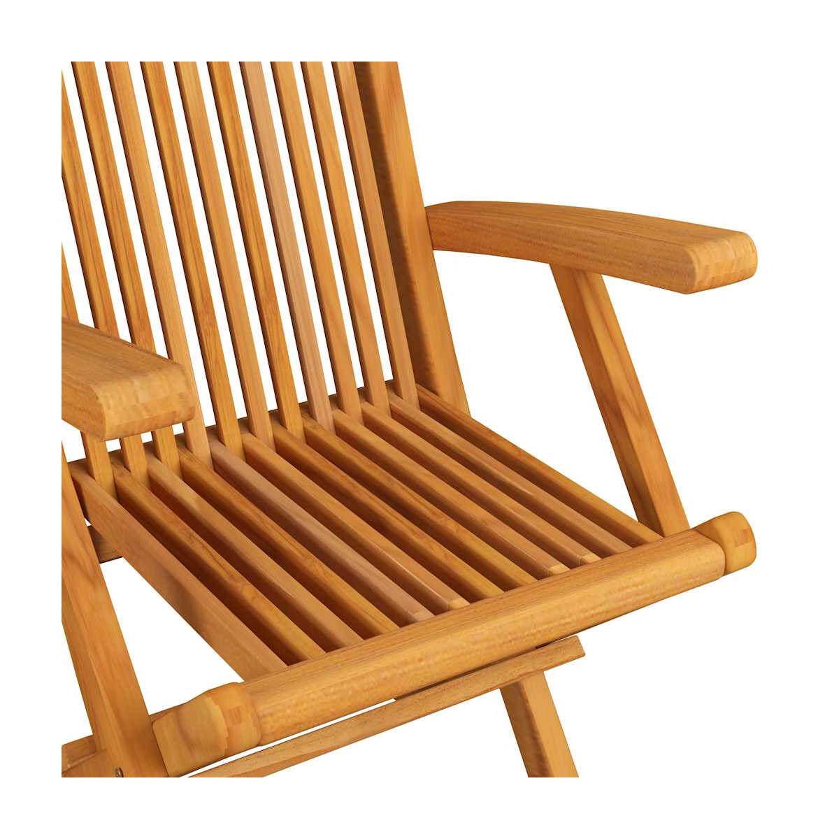 Este juego de sillas de jardín de madera consta de 2 unidades y está destinado a ser un gran aporte para el jardín, la terraza o el patio. Podrás relajarte y charlar con familiares y amigos o disfrutar del buen tiempo. Hecha con madera dura de teca muy duradera, este mueble de teca ha sido curado, secado en horno y luego lijado finamente para darle una apariencia muy suave. La madera de teca es conocida por su excepcional resistencia a la fuerza y al clima, por lo que es mucho más adecuada para muebles de jardín que cualquier otro tipo de madera. La madera de teca es la elección perfecta si deseas adquirir un mueble de jardín duradero. La superficie lijada se limpia fácilmente con un paño húmedo. Además, estas sillas de jardín son ligeras, lo que las hace totalmente flexibles y fáciles de mover. Si no las utilizas, las sillas de madera pueden plegarse para ahorrar espacio. Asimismo, los cojines de asiento incluidos refuerzan la comodidad del asiento.