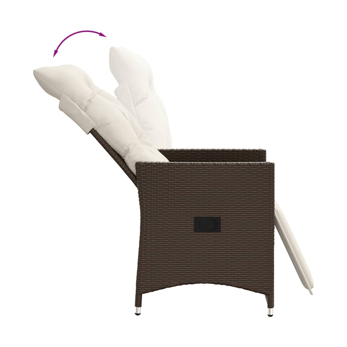 ¡Relájate y disfruta del aire libre en esta cómoda silla de jardín reclinable! Material duradero: El ratán PE, también conocido como ratán sintético, es un material sintético resistente y de bajo mantenimiento que se parece al ratán natural. Es ligero, fácil de limpiar y se usa comúnmente para muebles de exterior debido a su durabilidad y propiedades resistentes a la intemperie.Respaldo y reposapiés ajustables: este asiento de jardín tiene un asa. Puedes ajustar el respaldo y el reposapiés a cualquier posición tirando del asa y devolverlos rápidamente a sus posiciones originales.Experiencia de asiento cómoda: Estos muebles de exterior, completos con cojines acolchados gruesos, ofrecen una experiencia de asiento cómoda.Funda extraíble y lavable: El cojín del asiento cuenta con una funda extraíble para facilitar el lavado y mantenimiento. El cojín del respaldo tiene una solapa en la parte posterior para facilitar la fijación al respaldo.Estructura robusta y estable: La estructura de acero con recubrimiento en polvo garantiza que el mueble de jardín sea resistente y estable para usarlo a diario al aire libre. Información útil:Para asegurarte de que tus muebles de exterior se mantengan hermosos, recomendamos protegerlos con una funda impermeable.