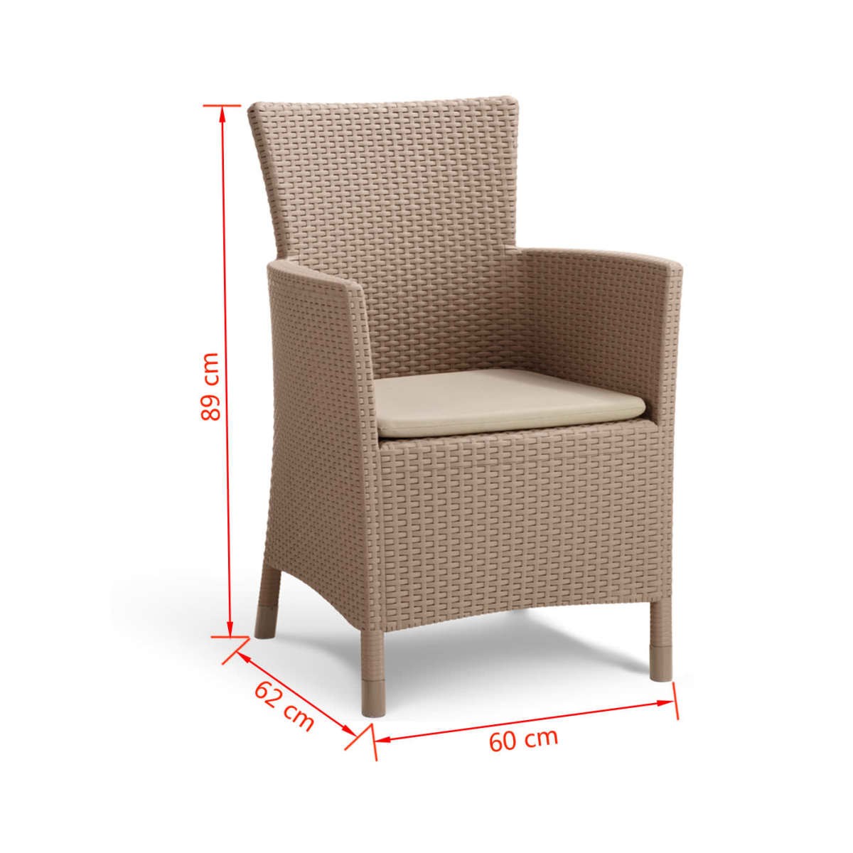 - Dimensiones de la silla: 60 x 62 x 89 cm (ancho x profundo x alto)