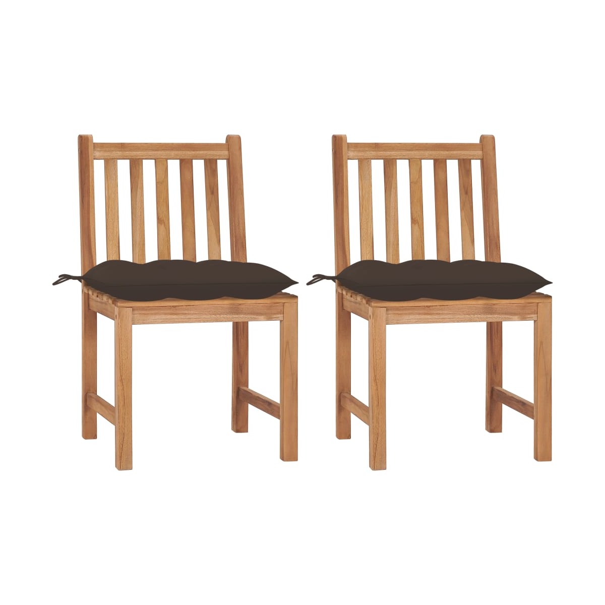 Este juego de sillas de jardín de madera extrafuerte te proporcionará un lugar perfecto para relajarte y disfrutar del sol en tu jardín o patio. Construidas con madera maciza de teca muy duradera, estos muebles de teca han sido secados al horno y lijados finamente para darles una apariencia muy lisa. La madera de teca es conocida por su excepcional robustez y resistencia a la intemperie, lo que la hace mucho más adecuada para muebles de jardín que cualquier otro tipo de madera. La madera de teca es la elección perfecta si quieres comprar un mueble de jardín duradero. Se les ha aplicado un hermoso acabado a base de agua para dar a la madera un color cálido. Las estables sillas de exterior tienen un aspecto refinado que encaja de inmediato en cualquier hogar. El cojín incluido es práctico y tiene una función decorativa.
