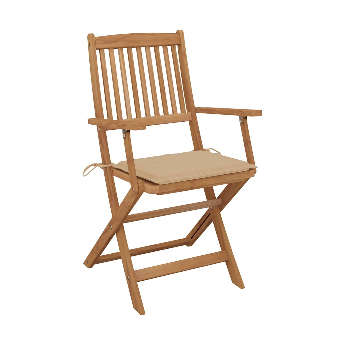 Estas sillas plegables de madera maciza de acacia con cojines proporcionan un lugar perfecto para relajarte y disfrutar del sol en el jardín o en el patio. Estas sillas de jardín están hechas de madera de acacia maciza, lo que las hace robustas y estables. La madera de acacia maciza tiene fuerza para soportar peso y es resistente al desgaste del tiempo. Por eso, estas sillas de jardín brindan años de relajación. Además, las sillas se pueden plegar para ahorrar espacio cuando no están en uso. Los cojines incluidos agregan comodidad extra. Cada cojín cuenta con dos juegos de cuerdas para fijarlo firmemente a la silla.
