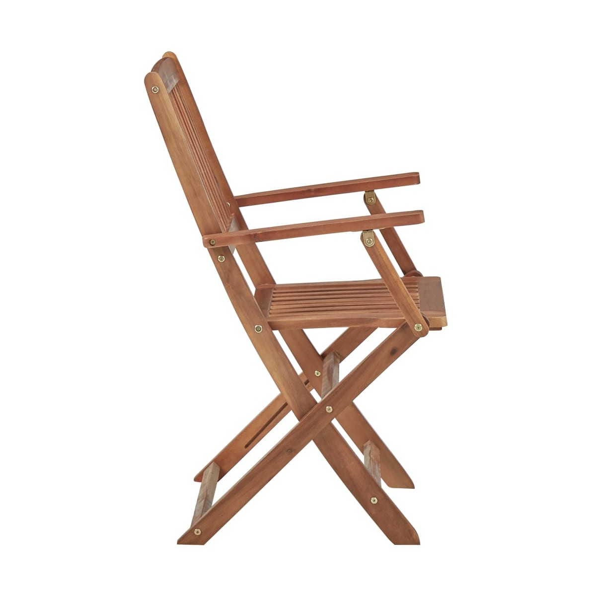Estas sillas plegables de madera maciza de acacia con cojines proporcionan un lugar perfecto para relajarte y disfrutar del sol en el jardín o en el patio. Estas sillas de jardín están hechas de madera de acacia maciza, lo que las hace robustas y estables. La madera de acacia maciza tiene fuerza para soportar peso y es resistente al desgaste del tiempo. Por eso, estas sillas de jardín brindan años de relajación. Además, las sillas se pueden plegar para ahorrar espacio cuando no están en uso. Los cojines incluidos agregan comodidad extra. Cada cojín cuenta con dos juegos de cuerdas para fijarlo firmemente a la silla. Nota: Para prolongar la vida útil de los muebles de exterior, te recomendamos que los limpies con regularidad y no los dejes al aire libre sin protección innecesariamente.Limpieza: Usa una solución de jabón suaveAlmacenamiento: Si es posible, guarda el producto en un lugar fresco y seco en el interior. Si el producto se almacena al aire libre, protégelo con una funda impermeable. Limpia y seca el exceso de agua o nieve de las superficies planas después de una lluvia o nevada. Permite la ventilación para evitar daños relacionados con la humedad.