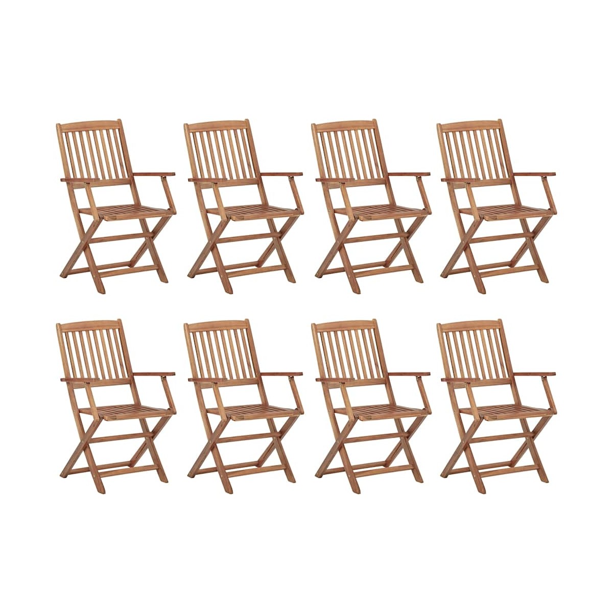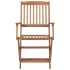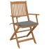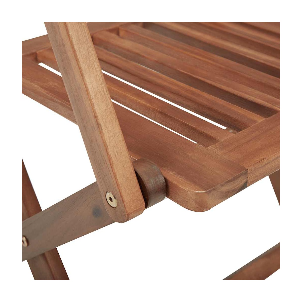 Este moderno juego de sillas de comedor de madera dará un toque de estilo natural a tu jardín, terraza o patio. Este juego de sillas plegables será una gran opción para cenar al aire libre. Estas sillas de comedor están hechas de madera de acacia de primera calidad, una madera dura tropical, que es resistente a la intemperie y duradera para años de uso. La superficie con acabado de aceite es fácil de limpiar con un paño húmedo. Las sillas se pueden plegar para ahorrar espacio cuando no están en uso. Además, los cojines incluidos brindan mayor comodidad. Cada cojín tiene 2 juegos de cuerdas para fijarlo firmemente a la silla. Nota: Para prolongar la vida útil de los muebles de exterior, te recomendamos que los limpies con regularidad y no los dejes al aire libre sin protección innecesariamente.Limpieza: Usar una solución de jabón suaveAlmacenamiento: Si es posible, guarda el producto en un lugar fresco y seco en el interior. Si el producto se almacena al aire libre, protégelo con una funda impermeable. Limpia y seca el exceso de agua o nieve de las superficies planas después de una lluvia o nevada. Permite la ventilación para evitar daños relacionados con la humedad.