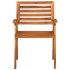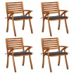 Este moderno juego de sillas de jardín de madera ha sido diseñado para ser un auténtico elemento llamativo en tu jardín, comedor o patio. Estas sillas de exterior está hecha de madera maciza de acacia, una madera dura con vetas densas. Estas sillas de hermoso diseño son estables, duraderas y llamativas. La superficie con acabado de aceite facilita la limpieza con un paño húmedo. Los reposabrazos añaden más comodidad al sentarse. Estos sillones, con un diseño de listones, son un aporte práctico y decorativo. Además, los cojines incluidos brindan mayor comodidad. Cada cojín tiene 2 juegos de cuerdas para fijarlo firmemente a la silla. Nota: Para prolongar la vida útil de los muebles de exterior, te recomendamos que los limpies con regularidad y no los dejes al aire libre sin protección innecesariamente.Limpieza: Usar una solución de jabón suaveAlmacenamiento: Si es posible, guarda el producto en un lugar fresco y seco en el interior. Si el producto se almacena al aire libre, protégelo con una funda impermeable. Limpia y seca el exceso de agua o nieve de las superficies planas después de una lluvia o nevada. Permite la ventilación para evitar daños relacionados con la humedad.