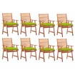 Este moderno juego de sillas de comedor de madera con cojines dará un toque de estilo natural a tu jardín, terraza o patio. Este juego de sillas de madera será una gran opción para cenar al aire libre. Estas sillas de jardín están hechas de madera maciza de acacia, una madera dura tropical, que es resistente a la intemperie y duradera para años de uso. La superficie con acabado de aceite es fácil de limpiar con un paño húmedo. El diseño de listones aportará un encanto rústico. Además, los cojines incluidos brindan mayor comodidad al sentarse. Está confeccionado en 100% poliéster que ha sido tratado para hacerlo impermeable. Cada cojín tiene dos juegos de cuerdas para fijarlo firmemente a la silla. Nota: Para prolongar la vida útil de los muebles de exterior, te recomendamos que los limpies con regularidad y no los dejes al aire libre sin protección innecesariamente.Limpieza: Usa una solución de jabón suaveAlmacenamiento: Si es posible, guarda el producto en un lugar fresco y seco en el interior. Si el producto se almacena al aire libre, protégelo con una funda impermeable. Limpia y seca el exceso de agua o nieve de las superficies planas después de una lluvia o nevada. Permite la ventilación para evitar daños relacionados con la humedad.