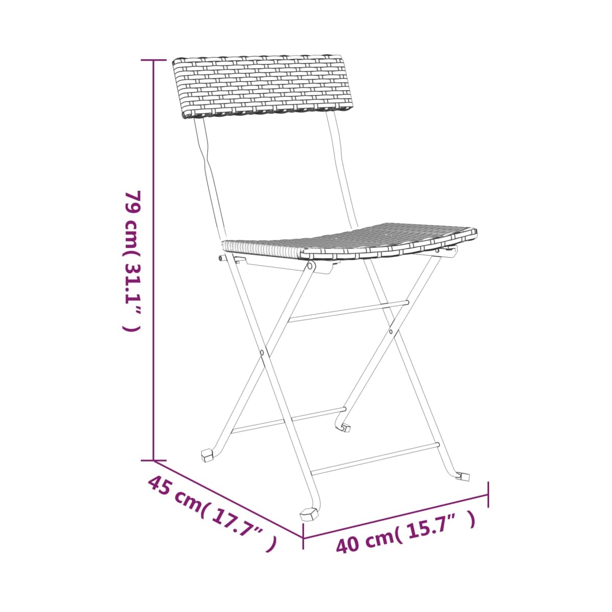 Estas sillas de cafetería plegables son un aporte perfecto para el jardín y la terraza, y crean además una impresión duradera. Material duradero: El ratán PE, también conocido como ratán sintético, es resistente a la intemperie y fácil de limpiar. La parte exterior se mantiene hermosa durante mucho tiempo. Es más económico que otros materiales, además de ofrecer una gran calidad, comodidad y aspecto estético.Estructura estable: La estructura de acero con recubrimiento en polvo garantiza su robustez y estabilidad.Diseño plegable: Las sillas de jardín se pueden plegar fácilmente cuando no se utilicen, para facilitar su almacenamiento y transporte. Nota:Para prolongar la vida de tus muebles de exterior, te recomendamos que los protejas con una funda impermeable.Cada producto viene con un manual de montaje en la caja para facilitar el montaje.